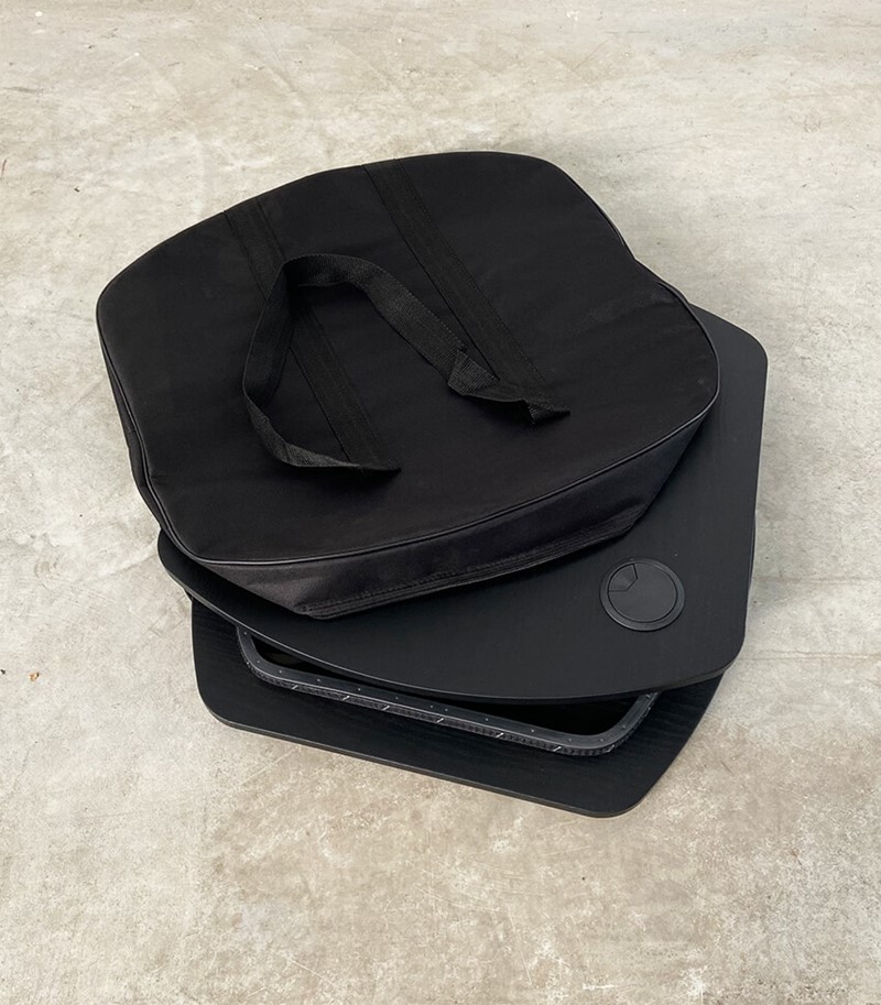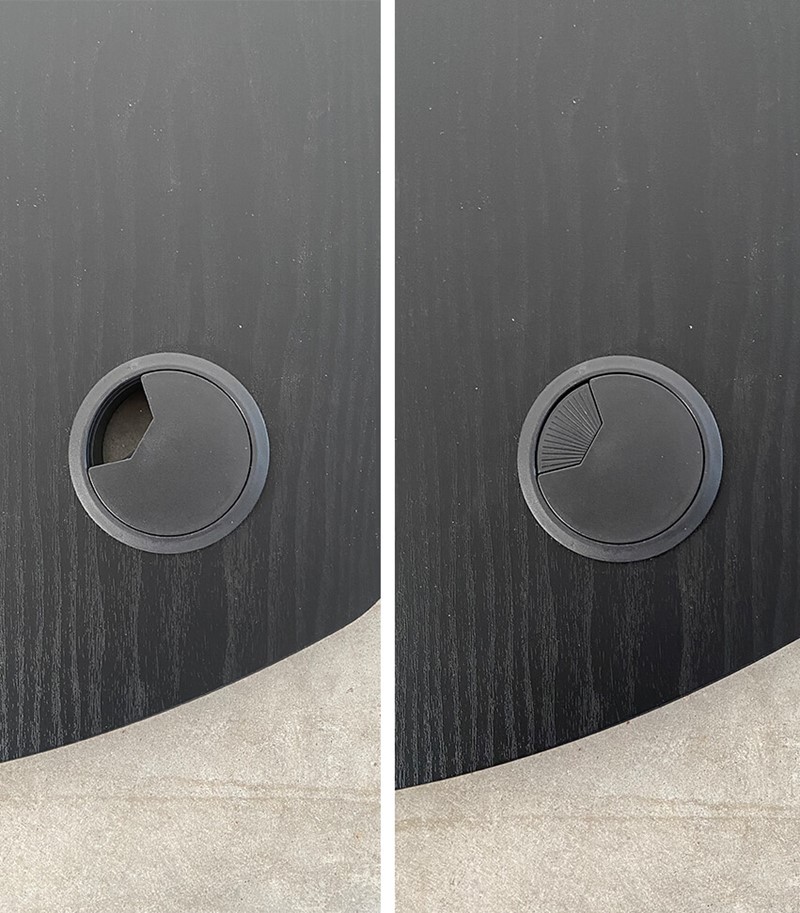 • Pode ser complementado com um ponto de carregamento: entradas USB e QI Power, que encaixa na furação inicialmente criada para passagem de cabos.