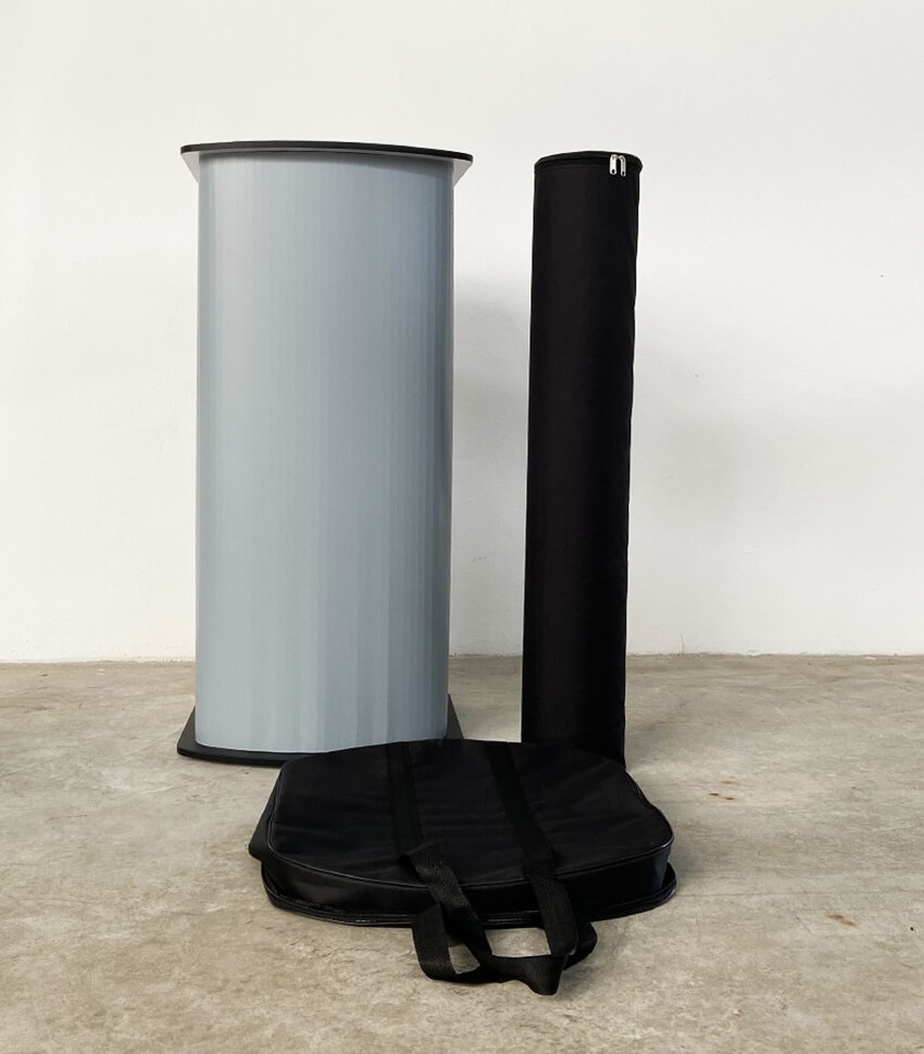 Este suporte publicitário é excelente para feiras e eventos promocionais em lojas ou apresentações comerciais.