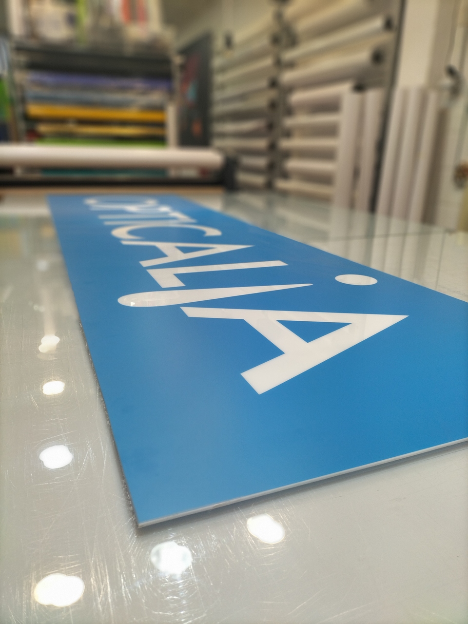 Reclamo Dupla-face modelo PLANO, com frentes em acrílico. Inclui acessórios de fixação (buchas e parafusos).