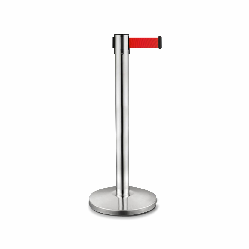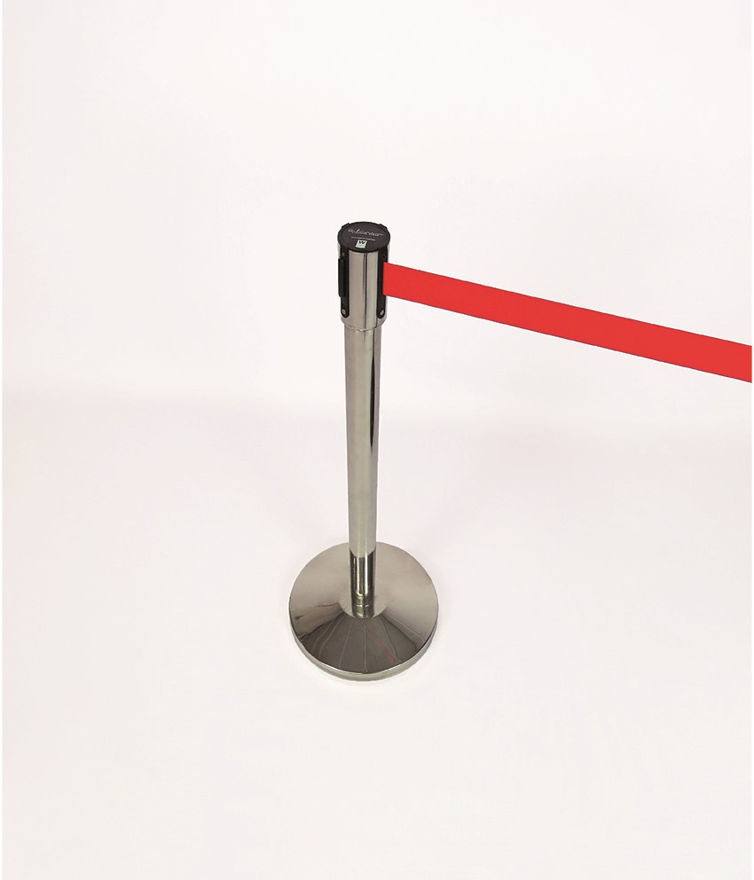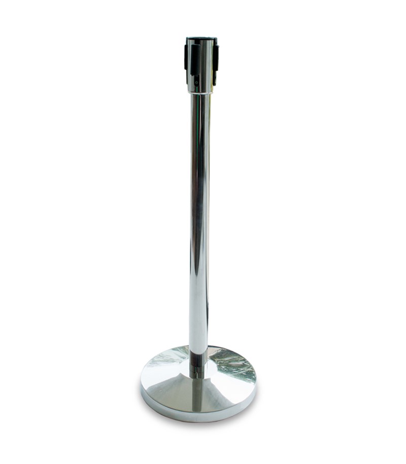 Moderno e multi-funções, este gestor de fila com cinto retrátil pode ser encontrado numa variedade de situações e podem ser embelezado com logotipos, gráficos e / ou mensagens de potenciar os resultados. Também dão versatilidade para filas e gestão de multidões, uma vez que pode facilmente expandir e retrair com o fluxo e refluxo das multidões. As quatro vias permite usar cintos para expandir em qualquer direção e um terminal universal que tornar mais fácil a adaptação a locais onde já existam outros gestores de fila. Este gestor de filas é muito utilizado em espectáculos musicais como concertos, arenas de desporto como estádios e pavilhões, superfícies comerciais como shoppings e muitos outros sítios.