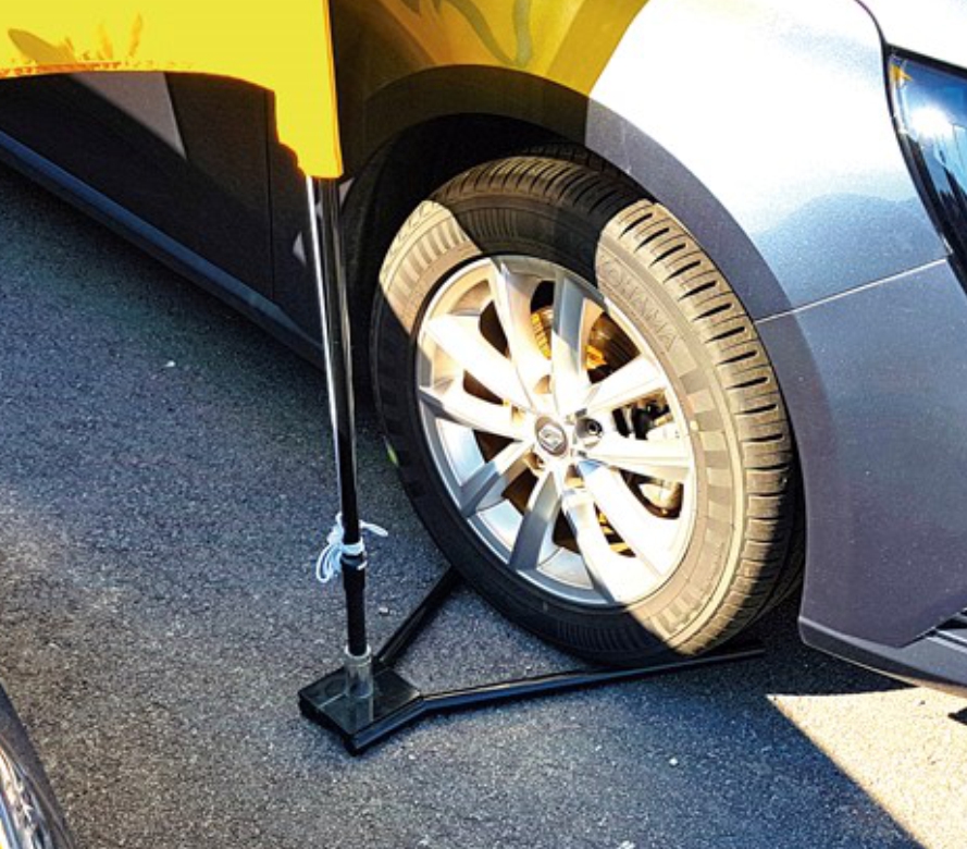 A Base para Carro, é a escolha ideal para colocar Bandeiras Publicitárias no seu stand de forma a tornar os seus automóveis mais atractivos e elegantes.