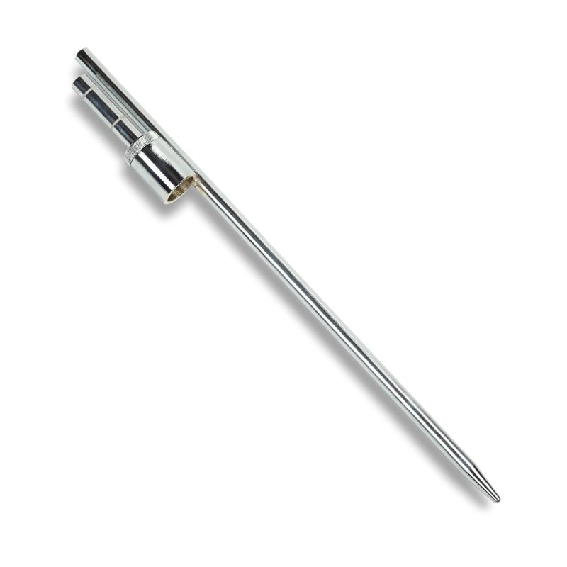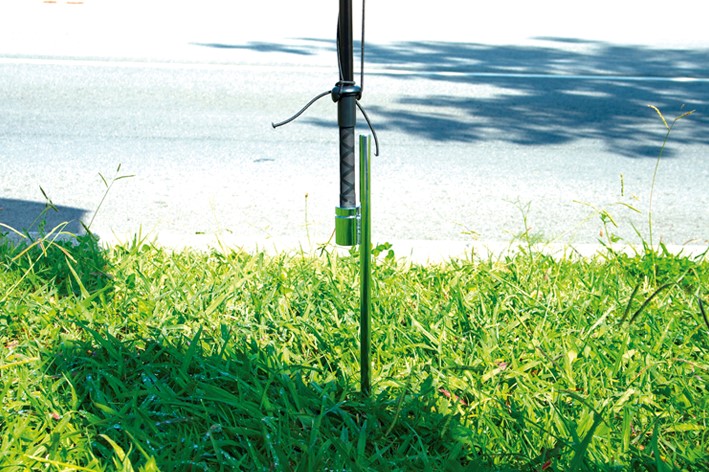 Esta estrutura é feita em ferro e é ideal para colocar no exterior, pois apresenta um espeto que torna a estrutura de bandeira estável mesmo em situações de bastante vento. A principal característica desta base é que para a sua boa utilização terá de perfurar o solo, isto é, pode aplicar esta base em terrenos de terra ou entre outros.