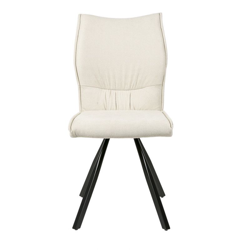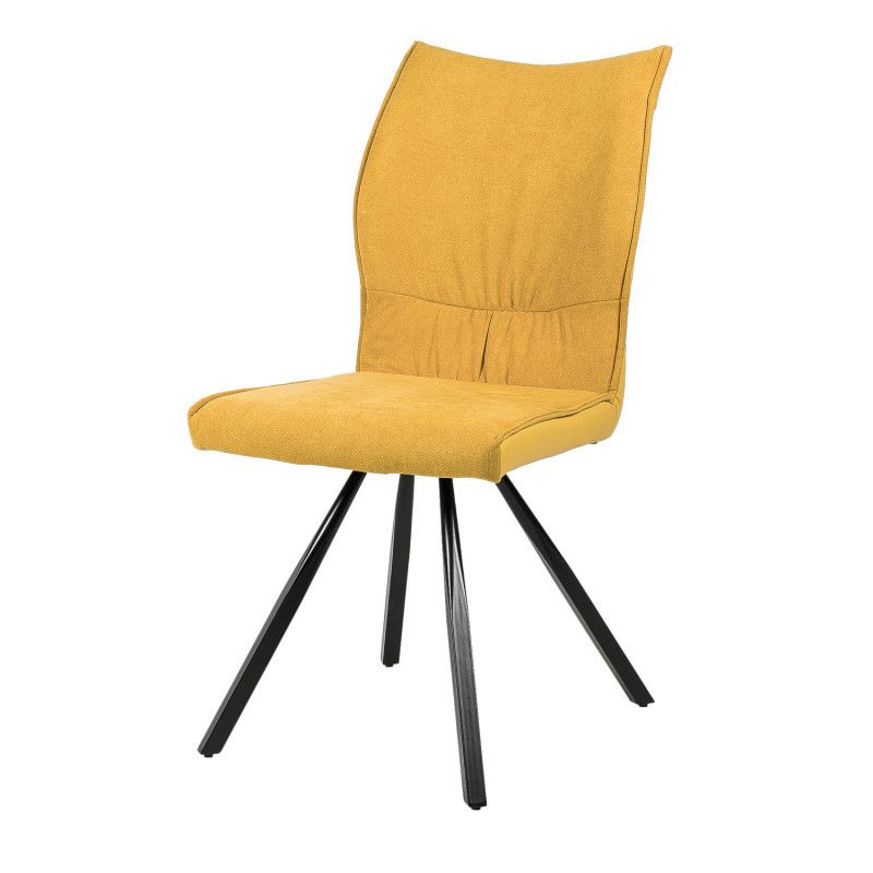 Cadeira com pernas piramidais de metal preto que conferem elegância a um estilo original.