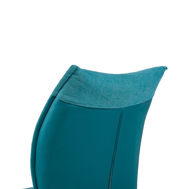 Este modelo tem a parte da frente do assento em tecido e o encosto em imitação de pele, uma mistura que confere muita vivacidade a todas as variantes de cores disponíveis.