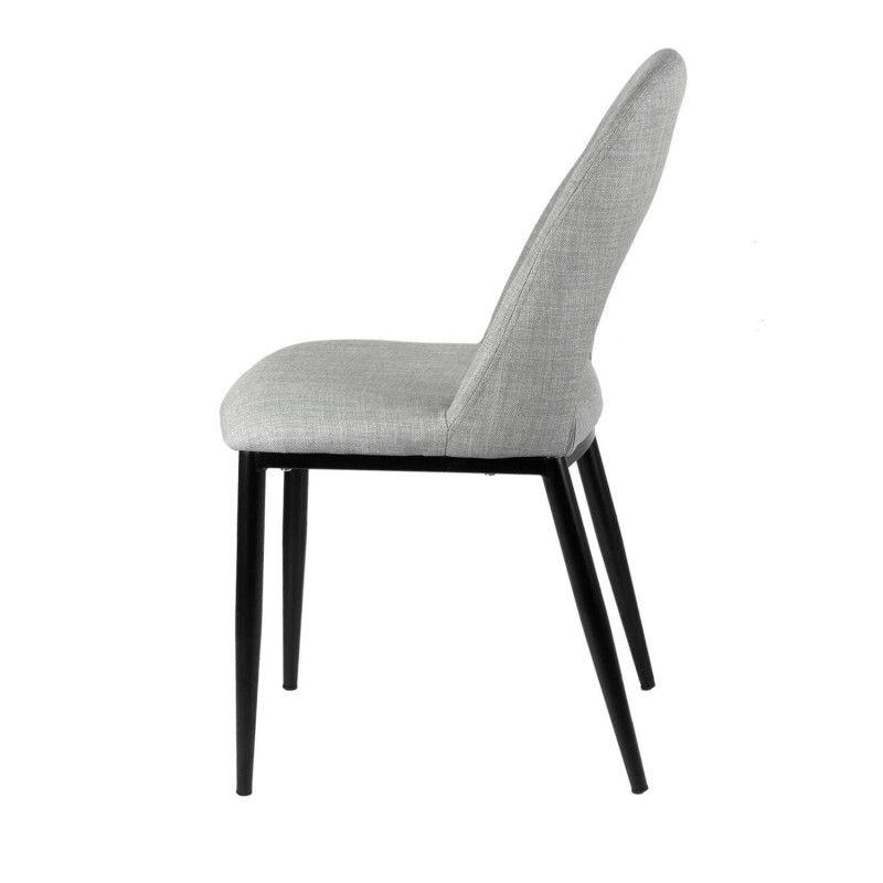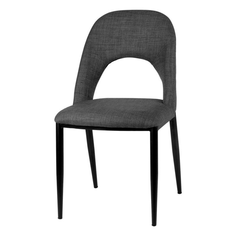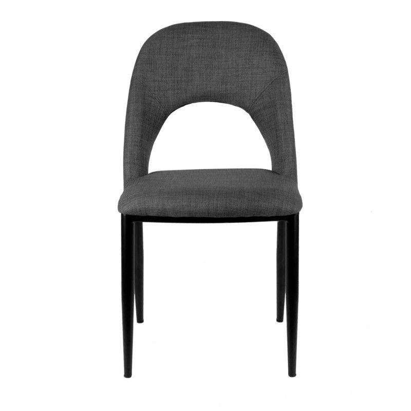 Cadeira de metal com pernas cónicas com acabamento em preto. Cadeira com tecido de diversas cores.