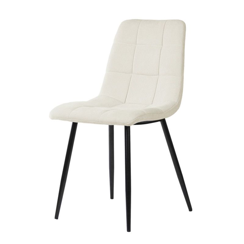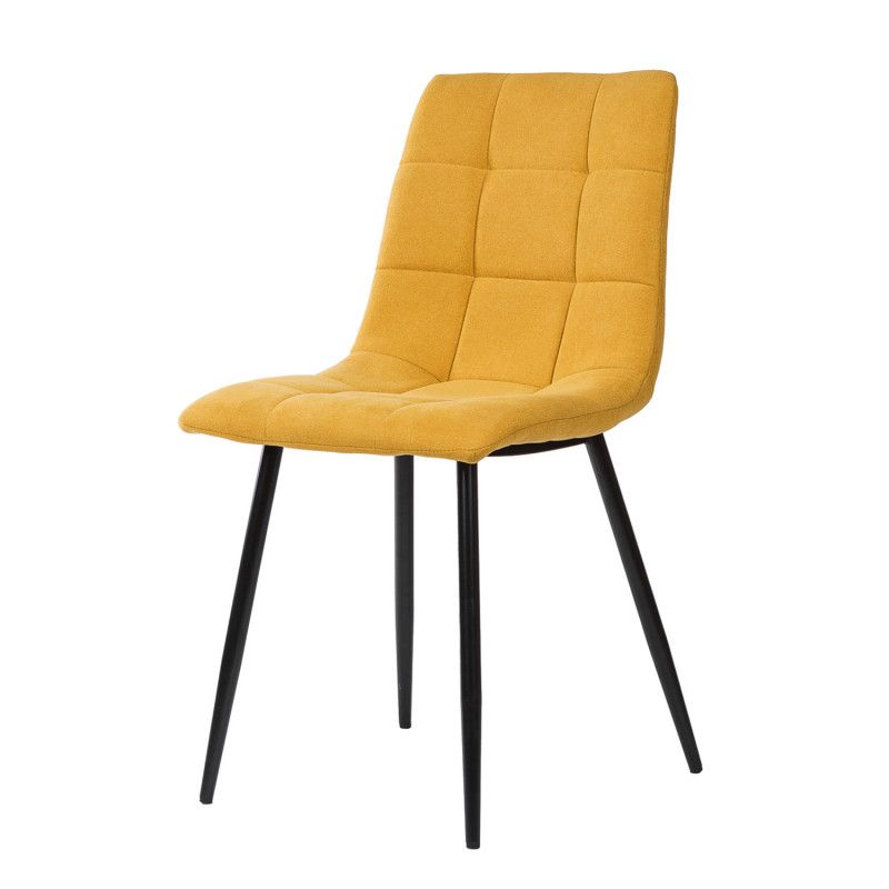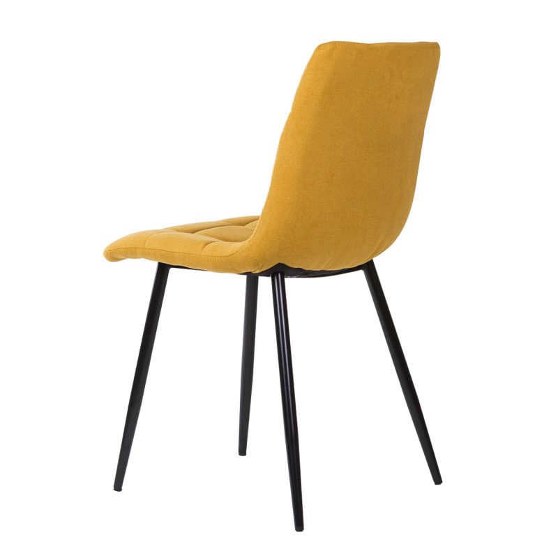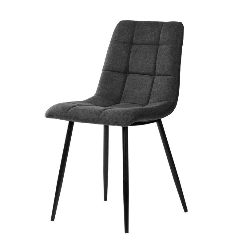 Cadeira de metal com pernas cónicas, com acabamento em preto. Resistente e robusto devido à composição dos seus materiais.