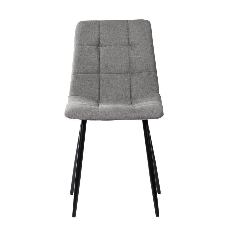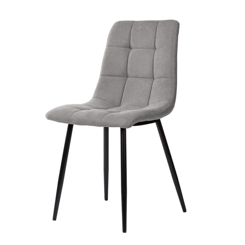 É uma cadeira confortável e seu estofamento em tecido dá um toque moderno e elegante.