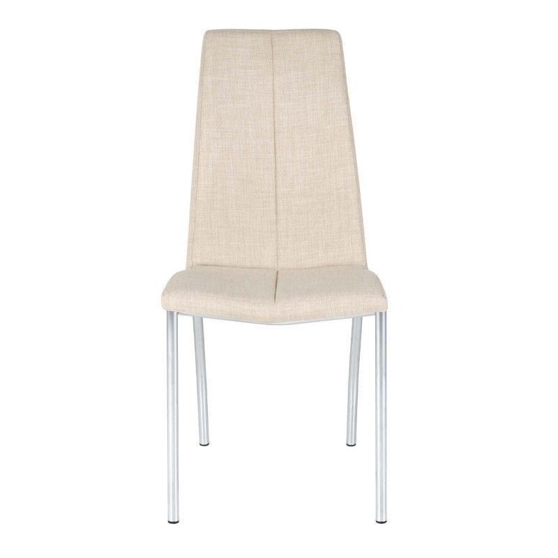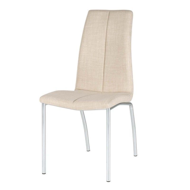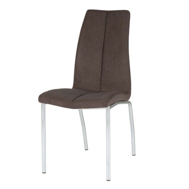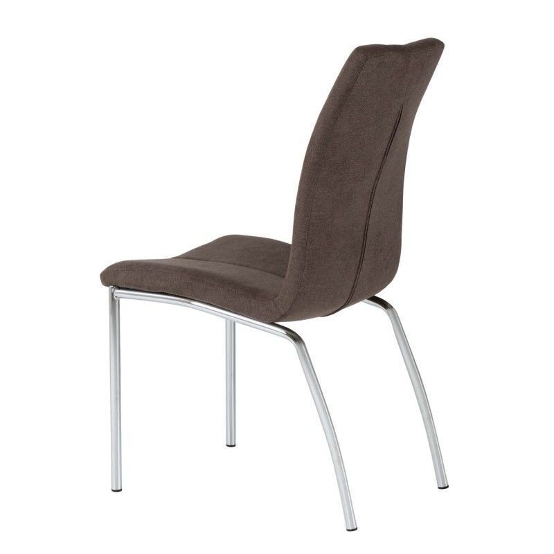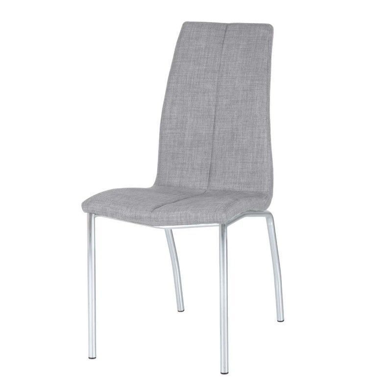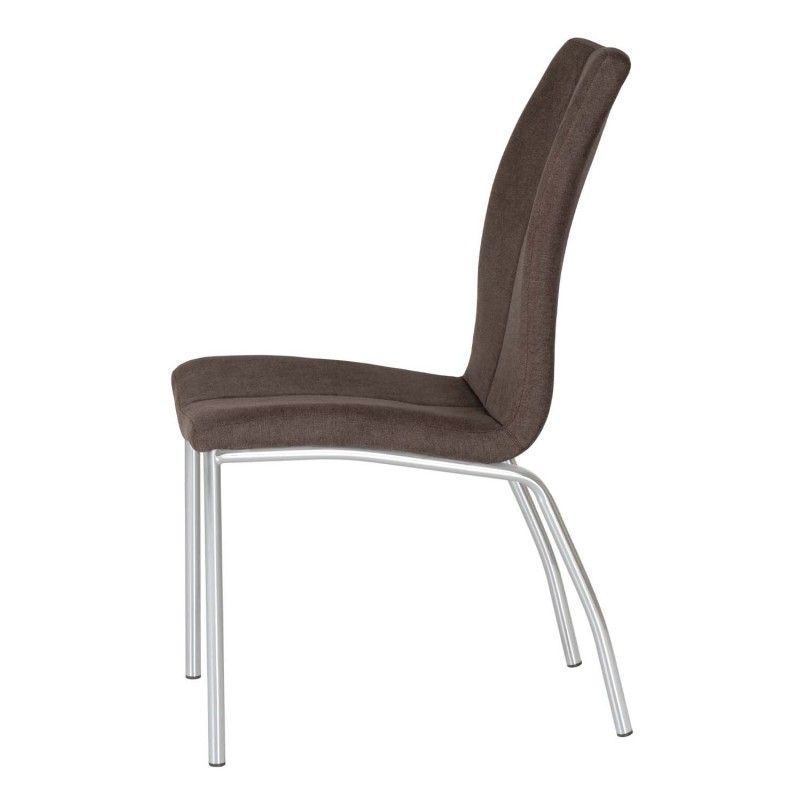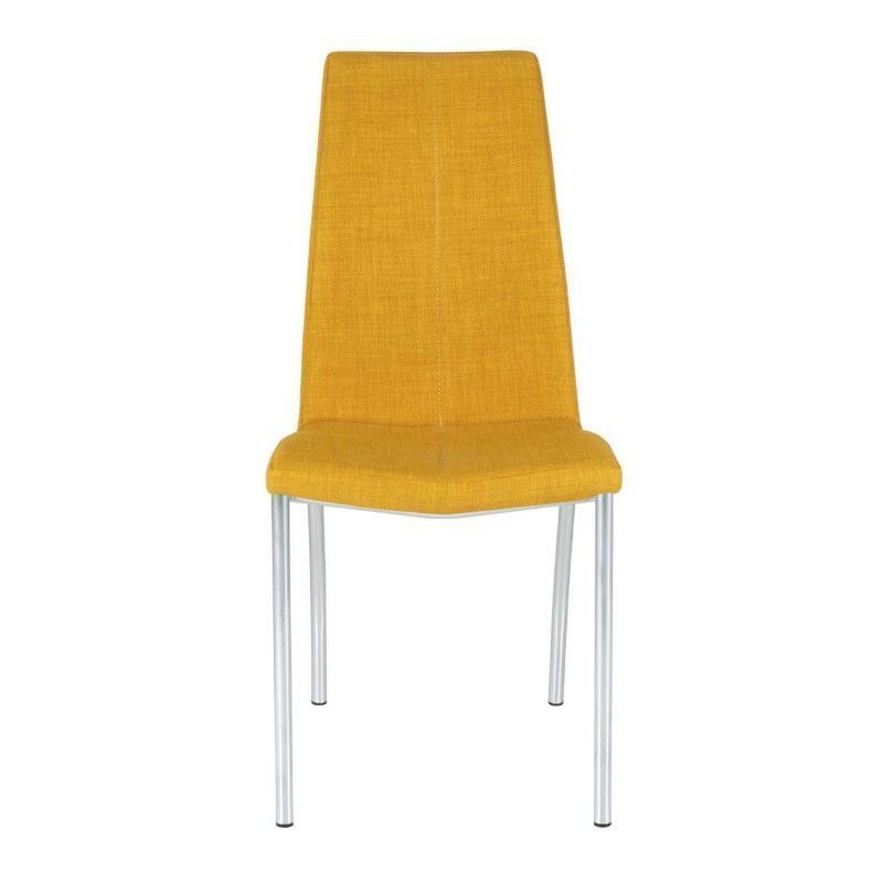 Cadeira estofada com estrutura de aço e perna cromada. Estofada com diversas cores disponíveis, de design simples, é uma cadeira resistente e robusta pela composição de seus materiais.
