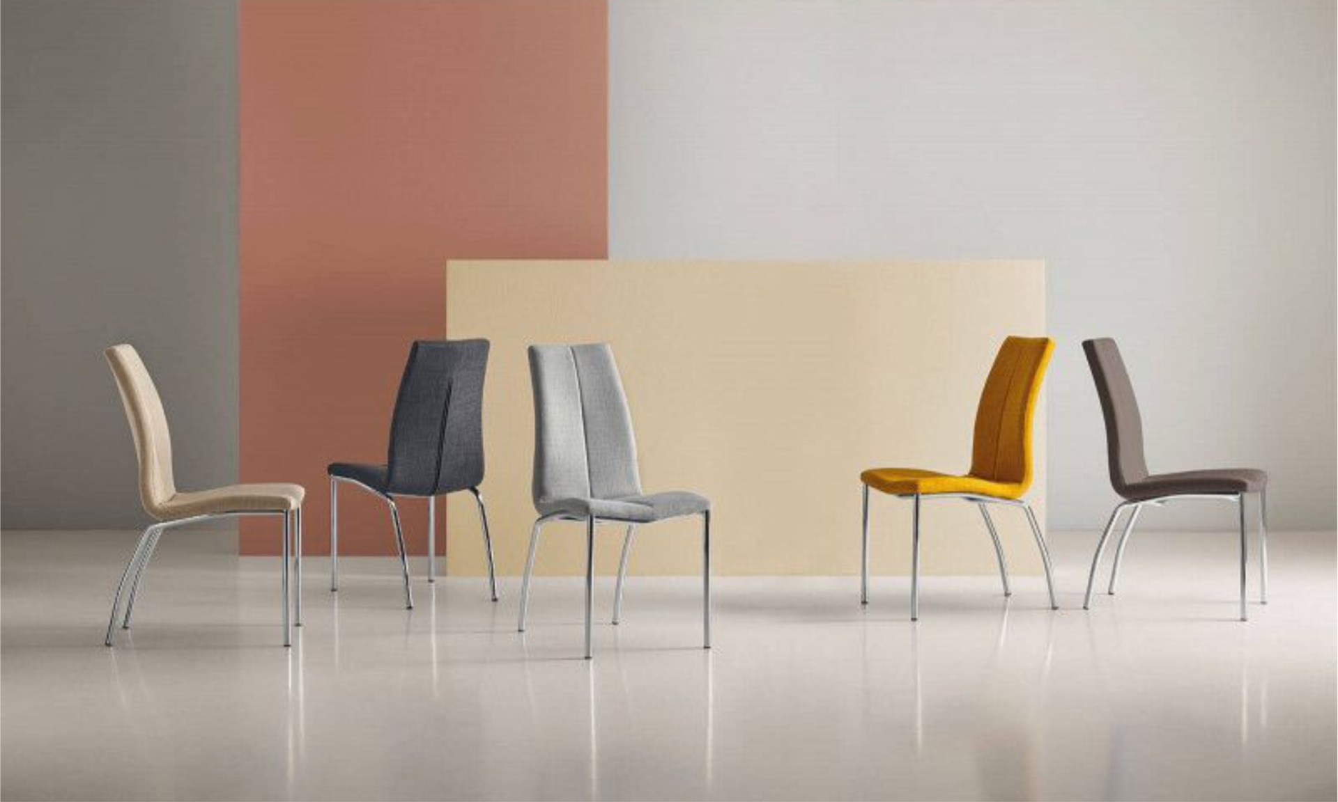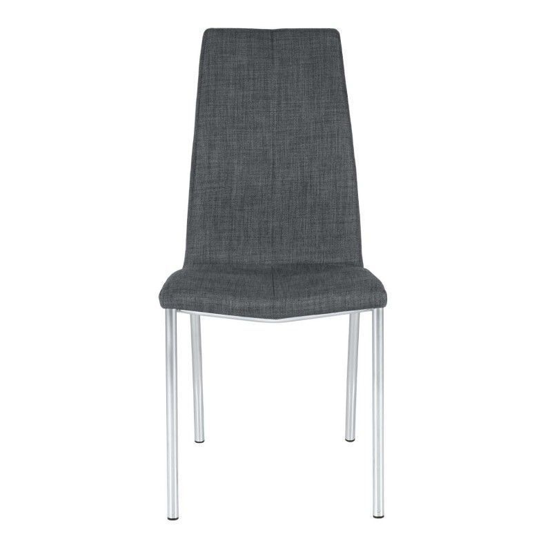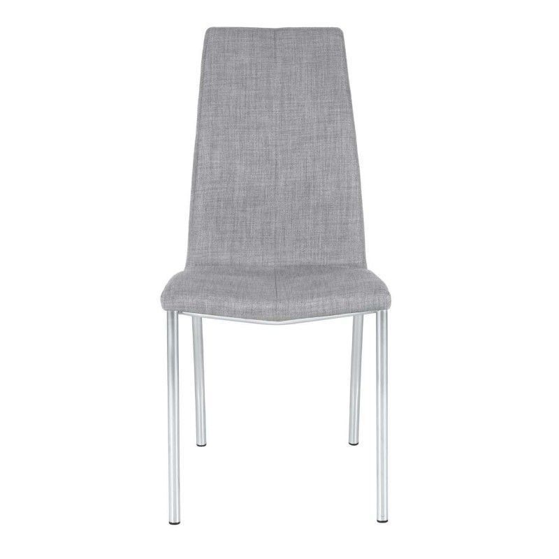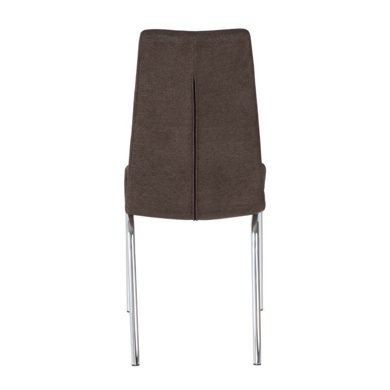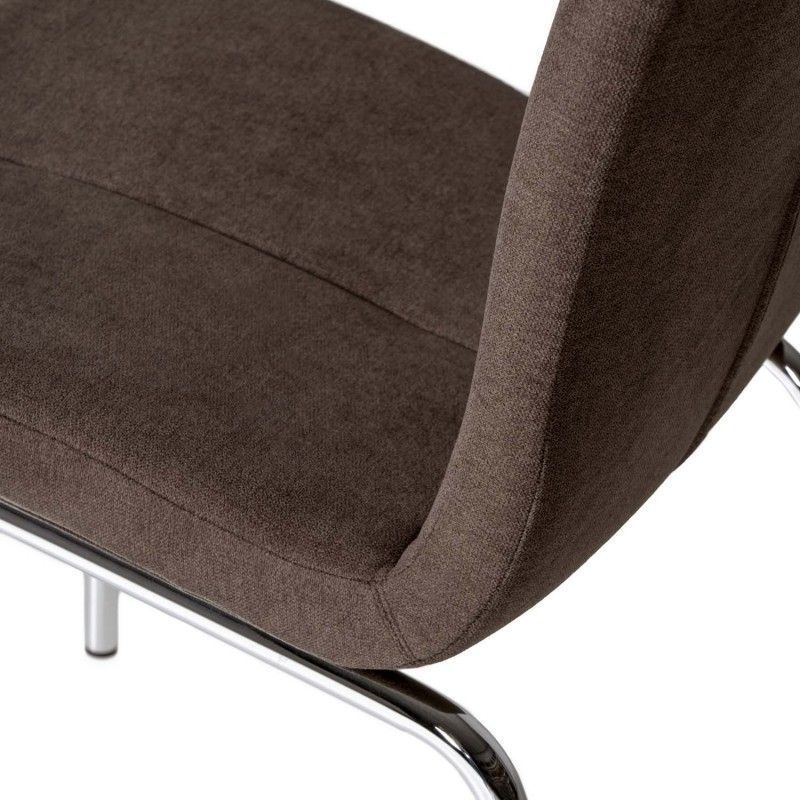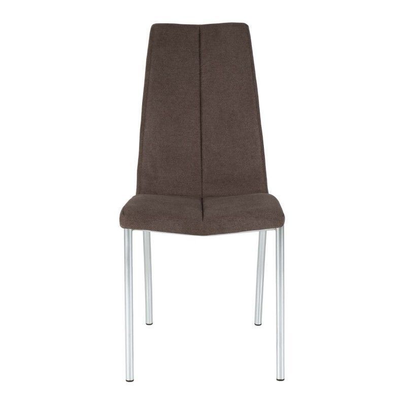 Cadeira estofada com estrutura de aço e perna cromada. Estofada com diversas cores disponíveis, de design simples, é uma cadeira resistente e robusta pela composição de seus materiais.