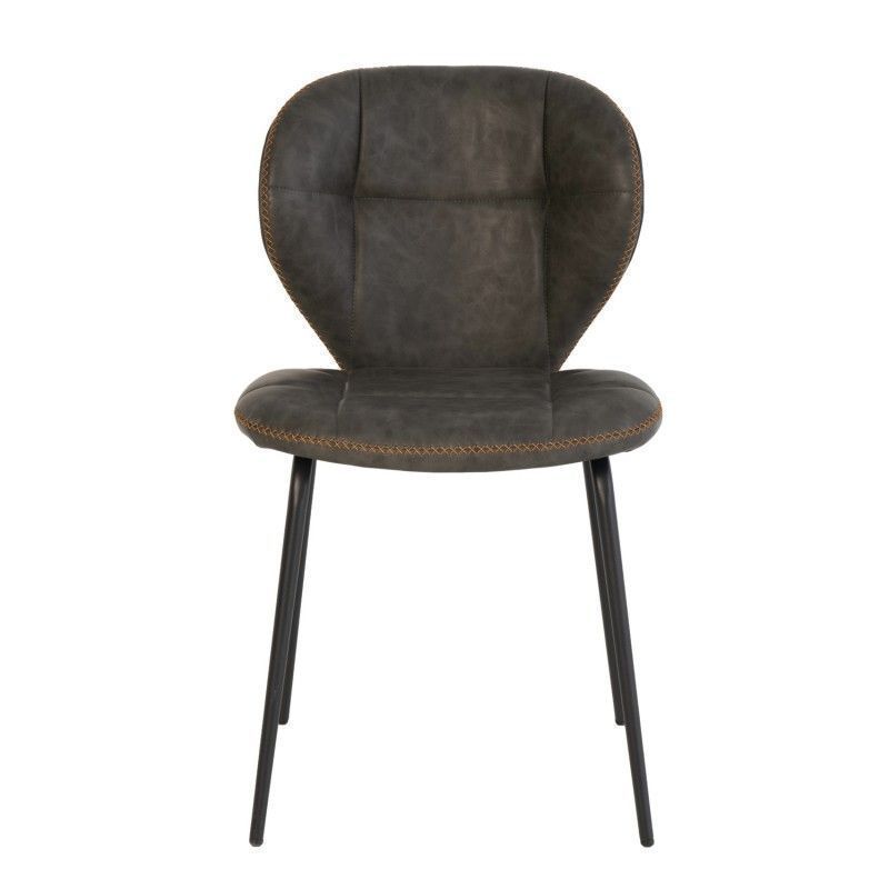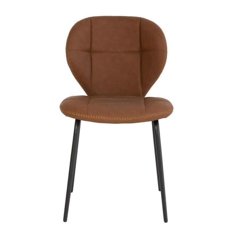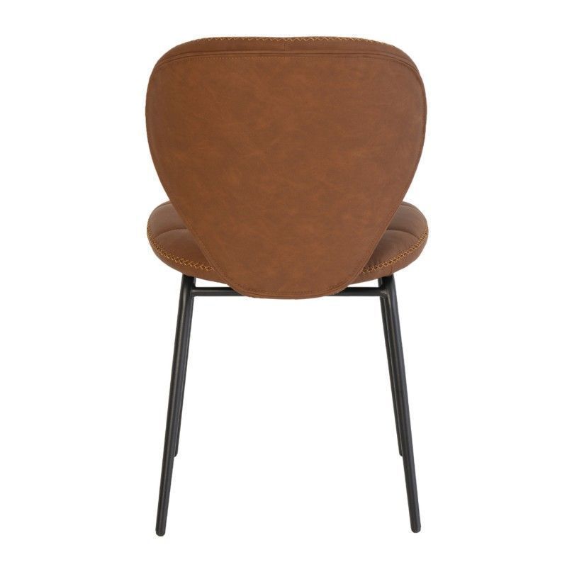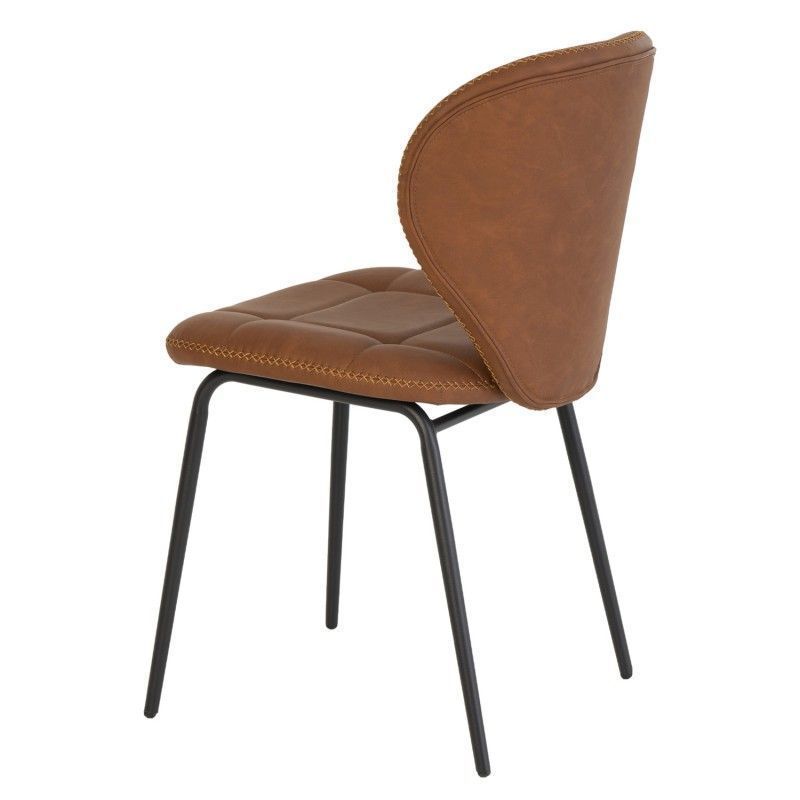Cadeira estilo industrial vintage com assento em couro sintético e pernas de metal.
