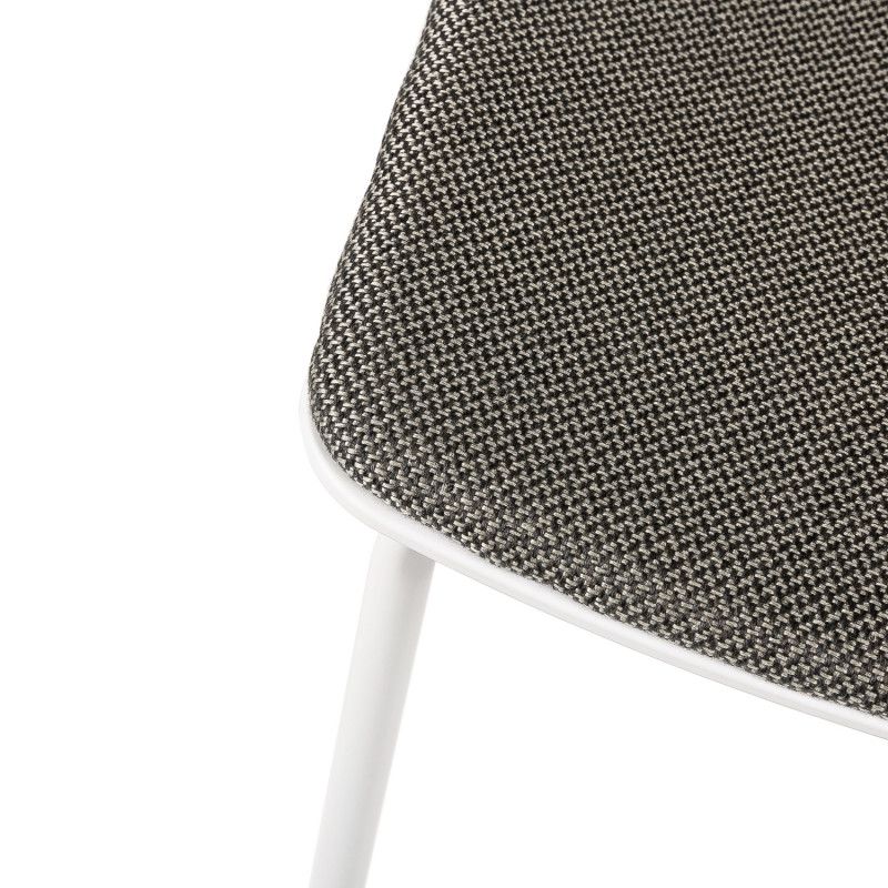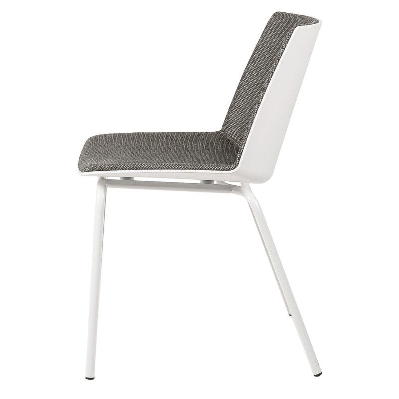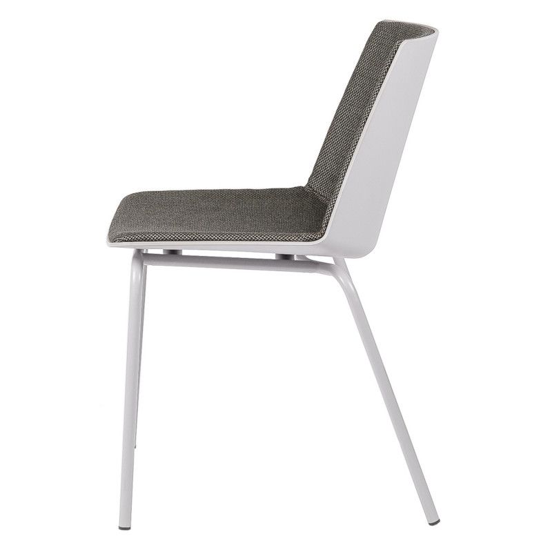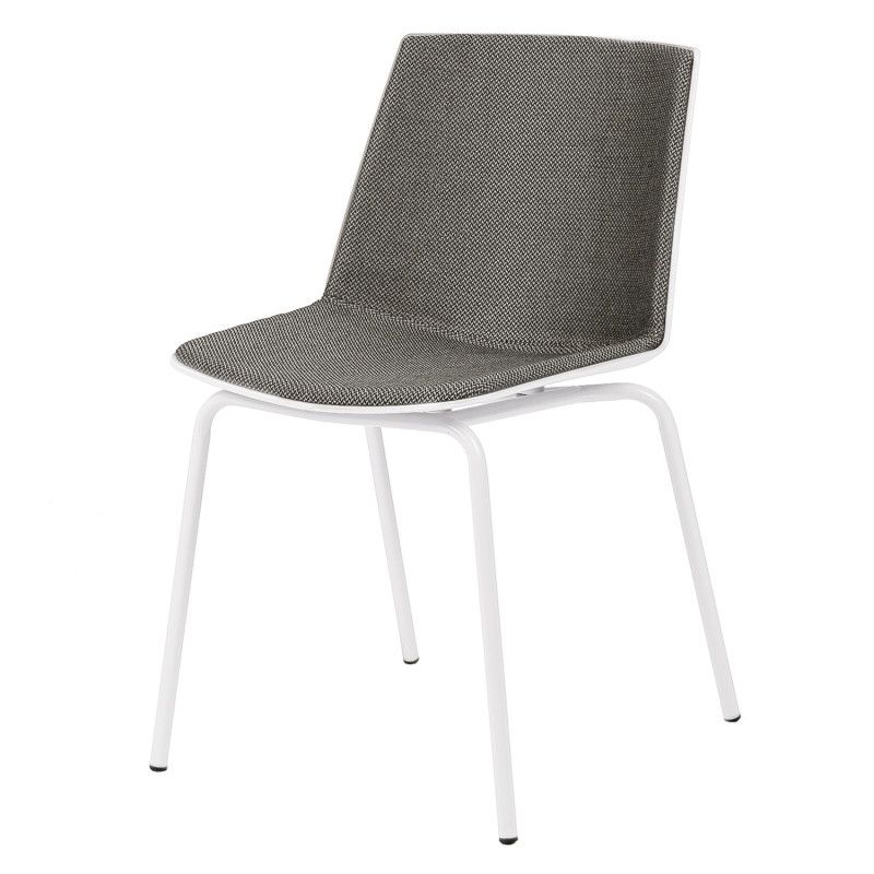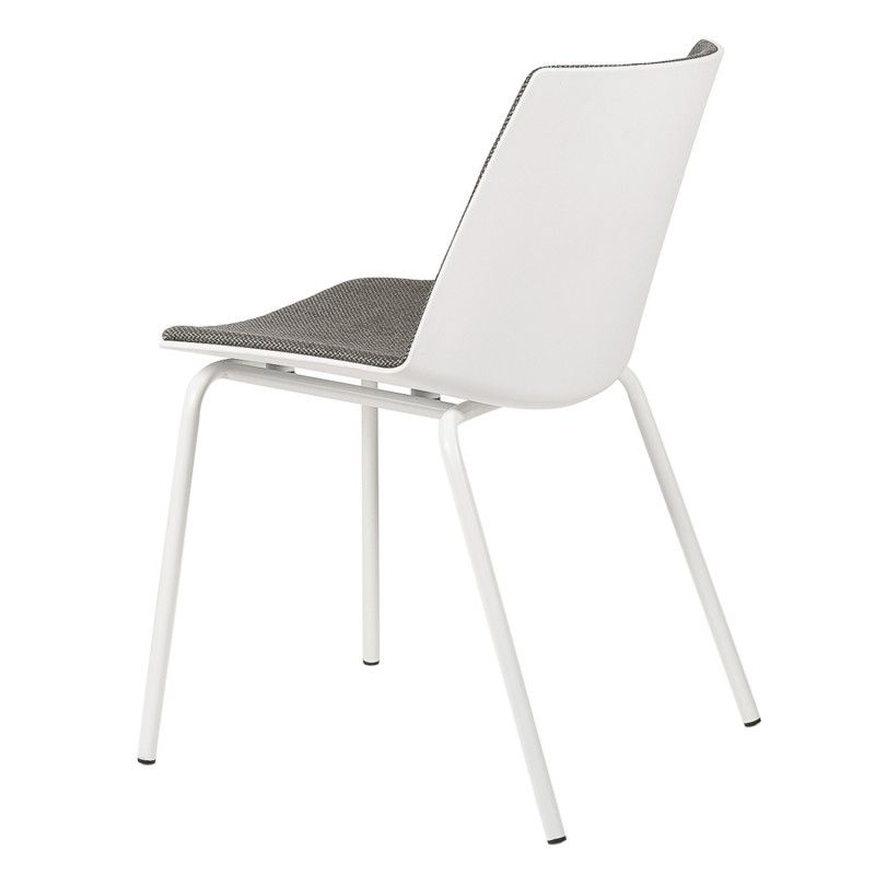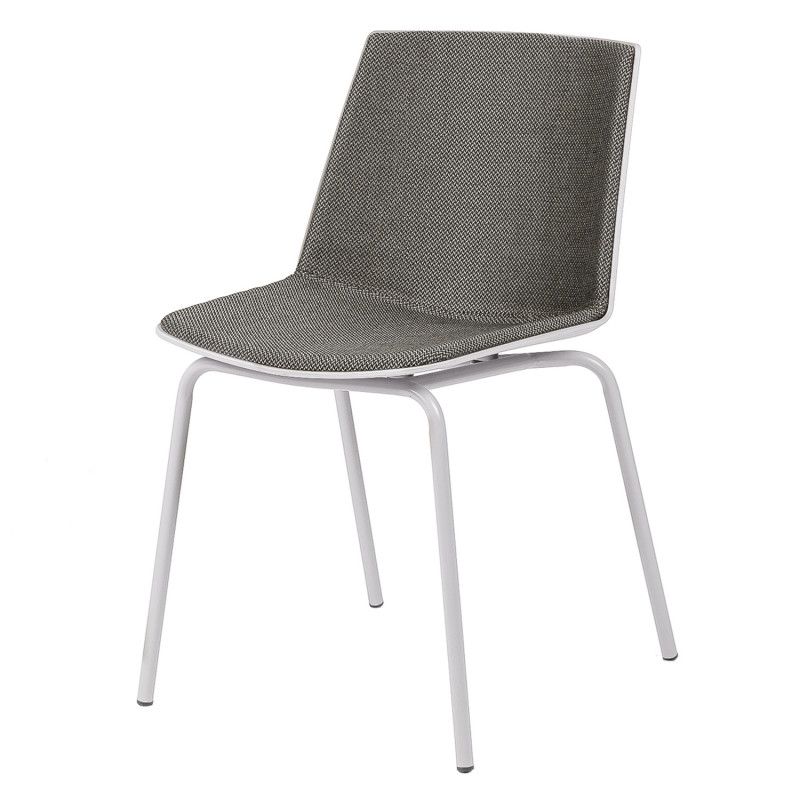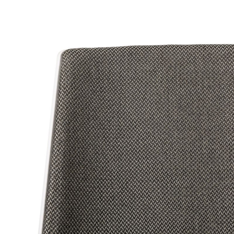 Cadeira com estrutura em polipropileno e tecido marmorizado cinza.