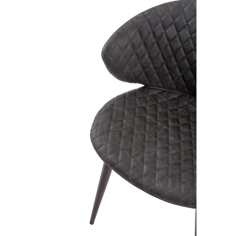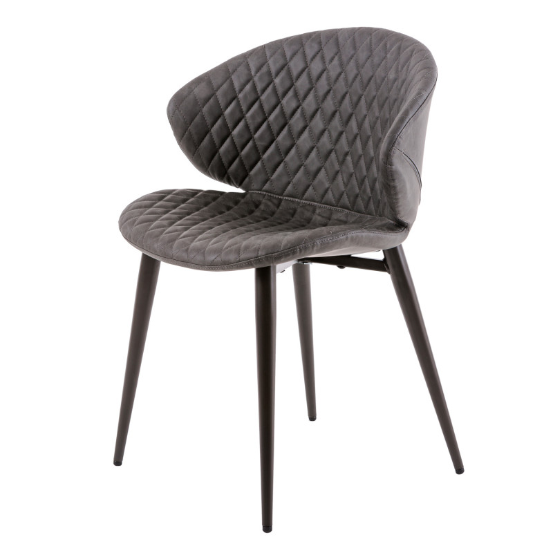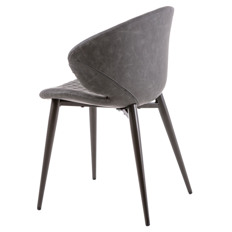 Cadeira de metal com pernas cónicas com acabamento em preto. Resistente e robusto devido à composição dos seus materiais.