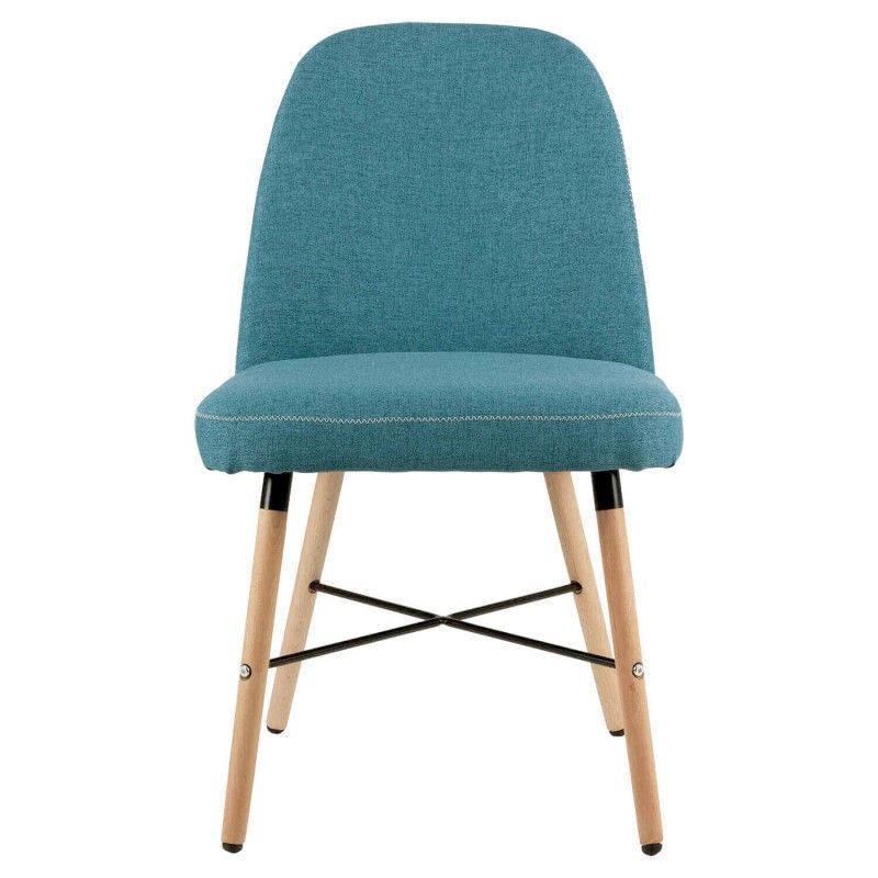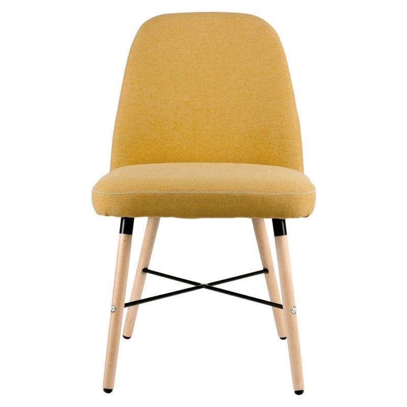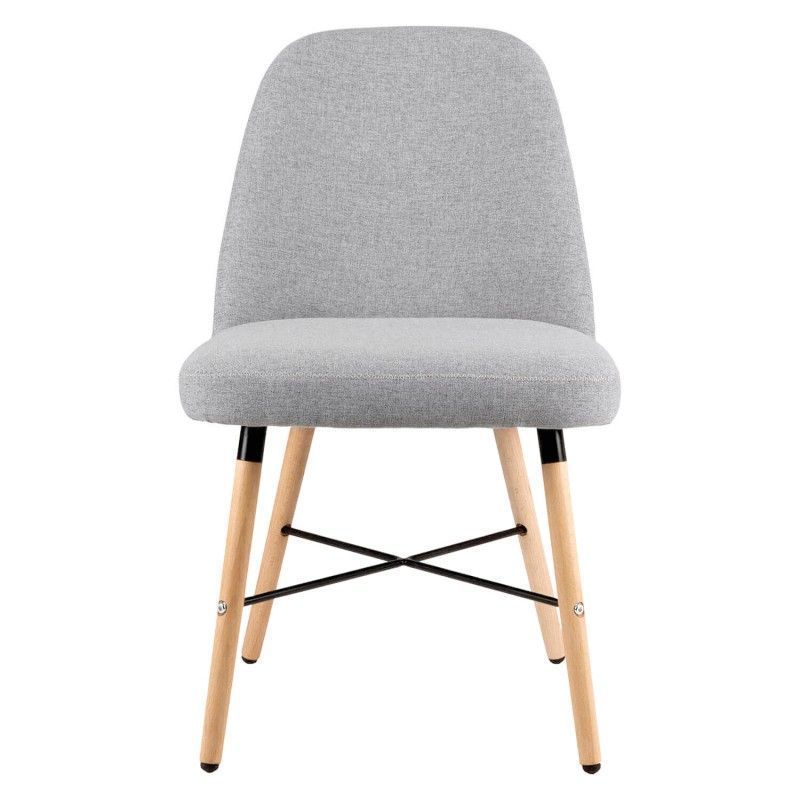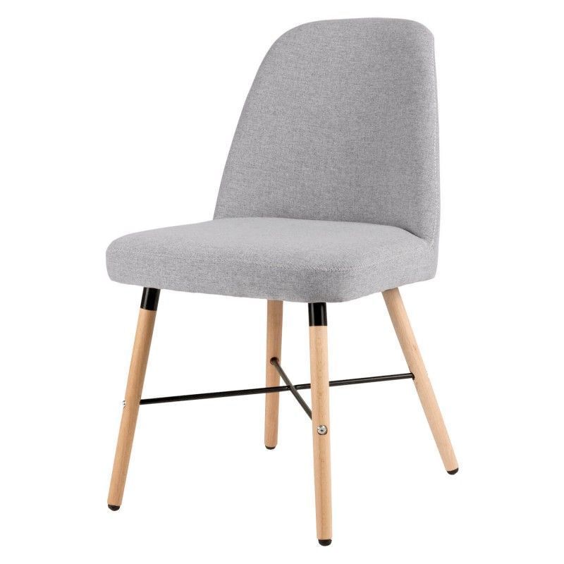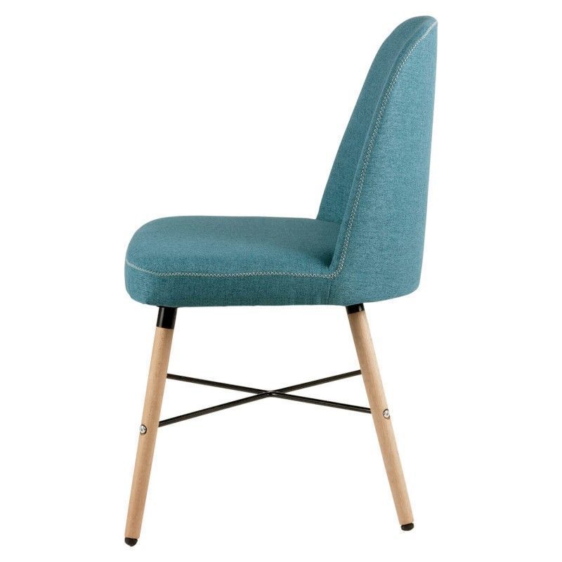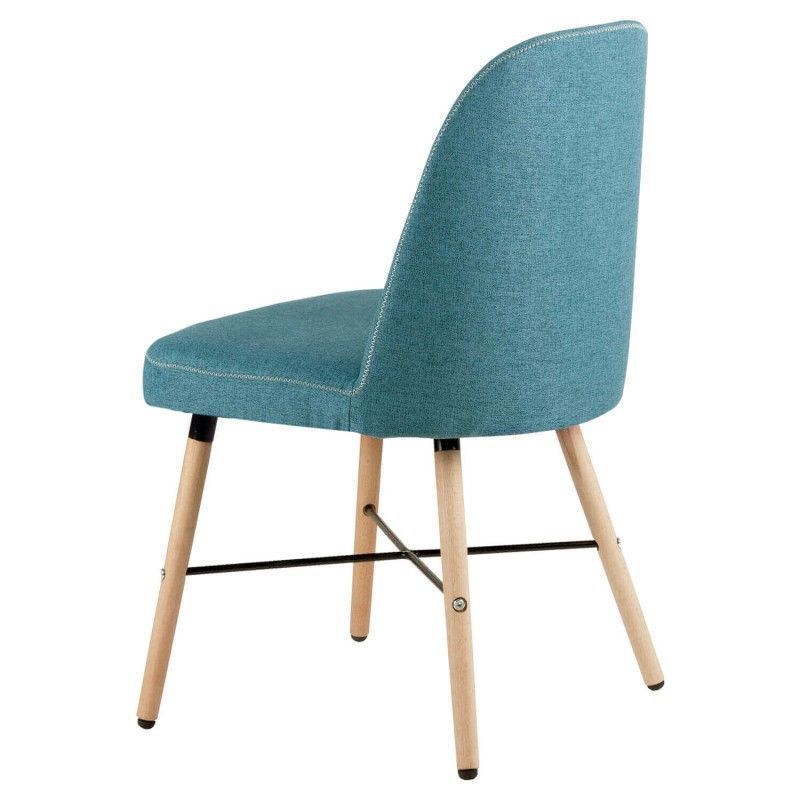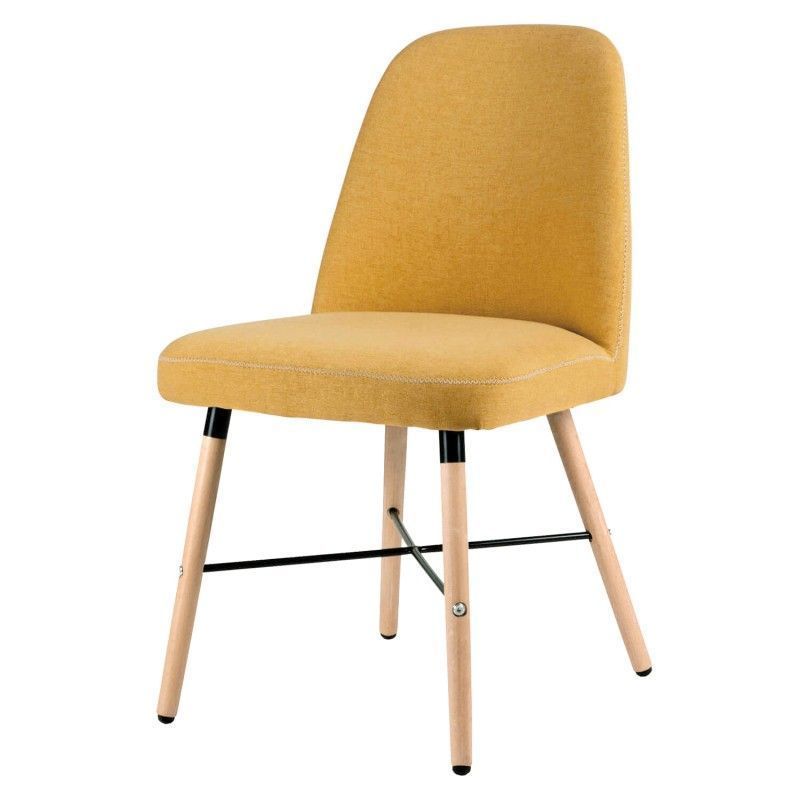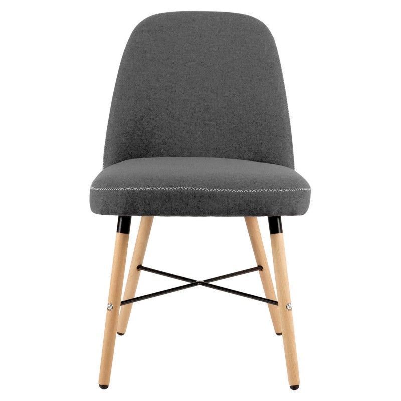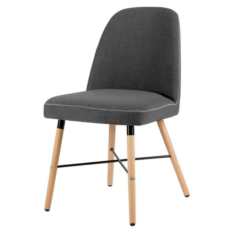 Cadeira nórdica estofada com diversas cores disponíveis e com pespontos a toda a volta. Cadeira em madeira de faia com regulador de altura na base, bem como cruzeta metálica na base para maior estabilidade e robustez.