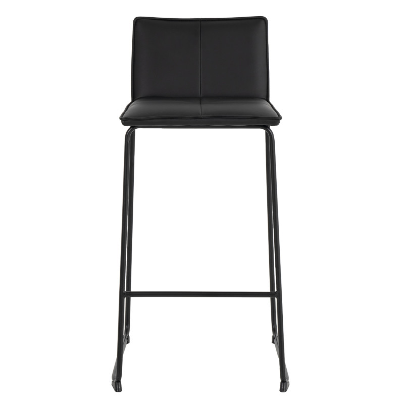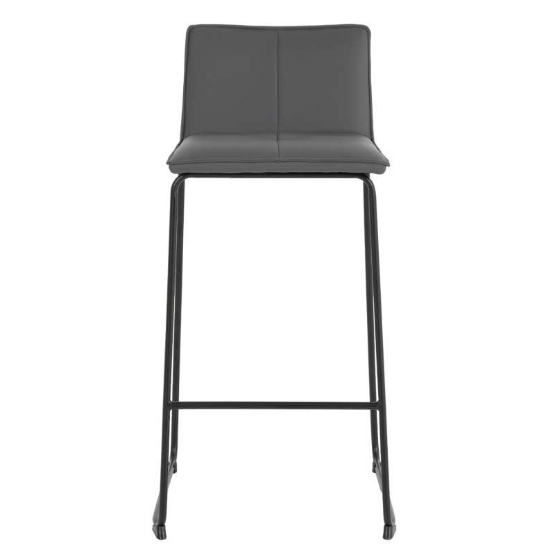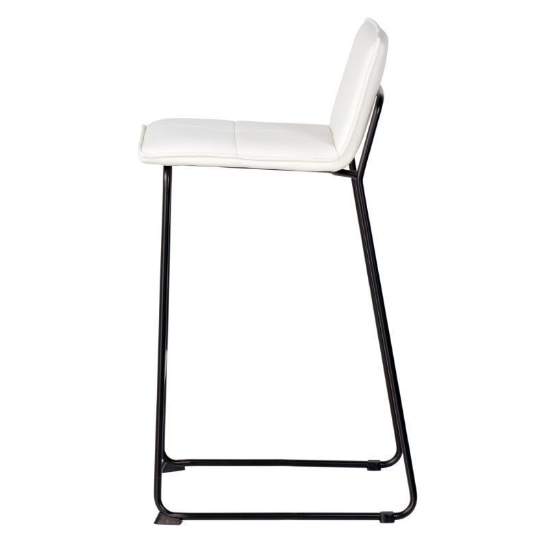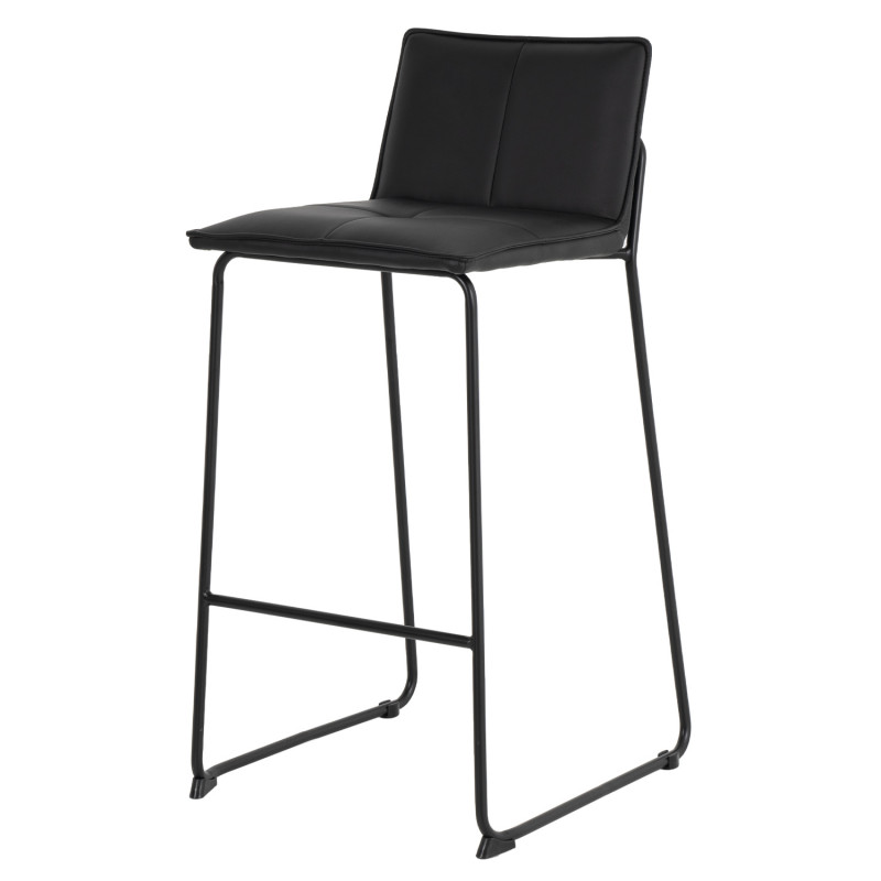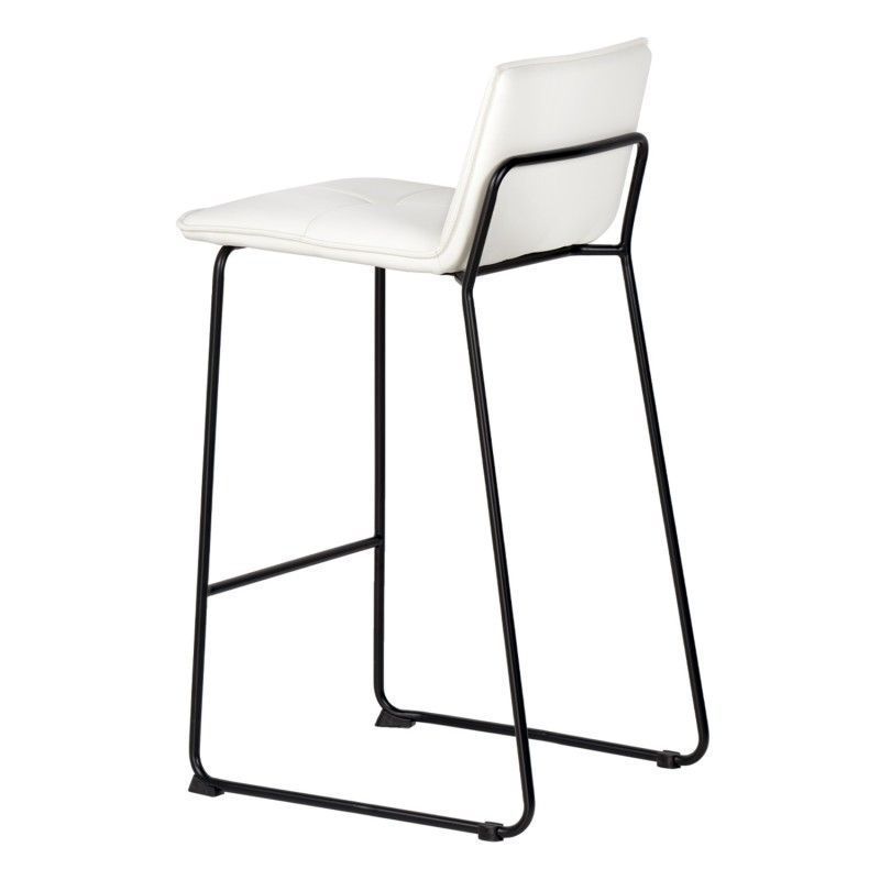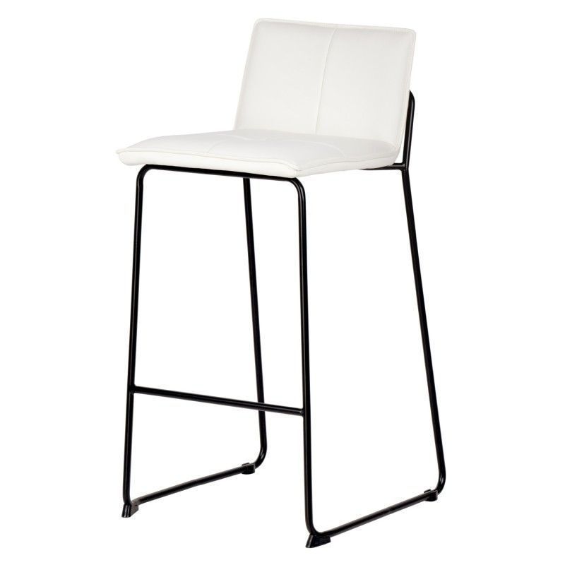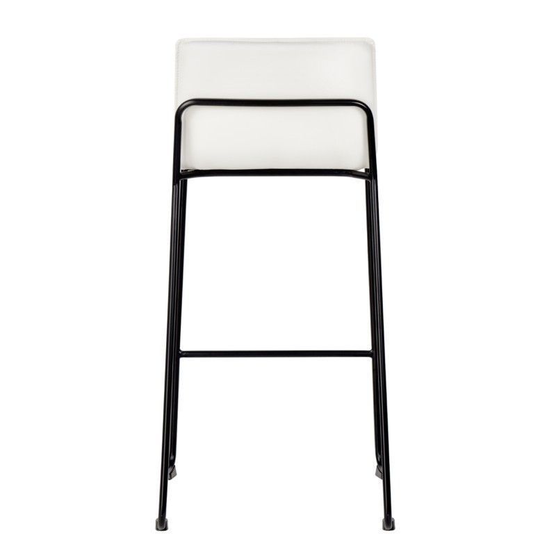 Cadeira alta com estrutura em aço reforçado e assento com encosto estofado em pele sintética que lhe confere um toque elegante.