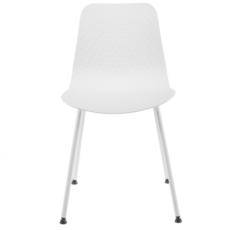 Cadeira funcional em polipropileno com design oval no encosto.