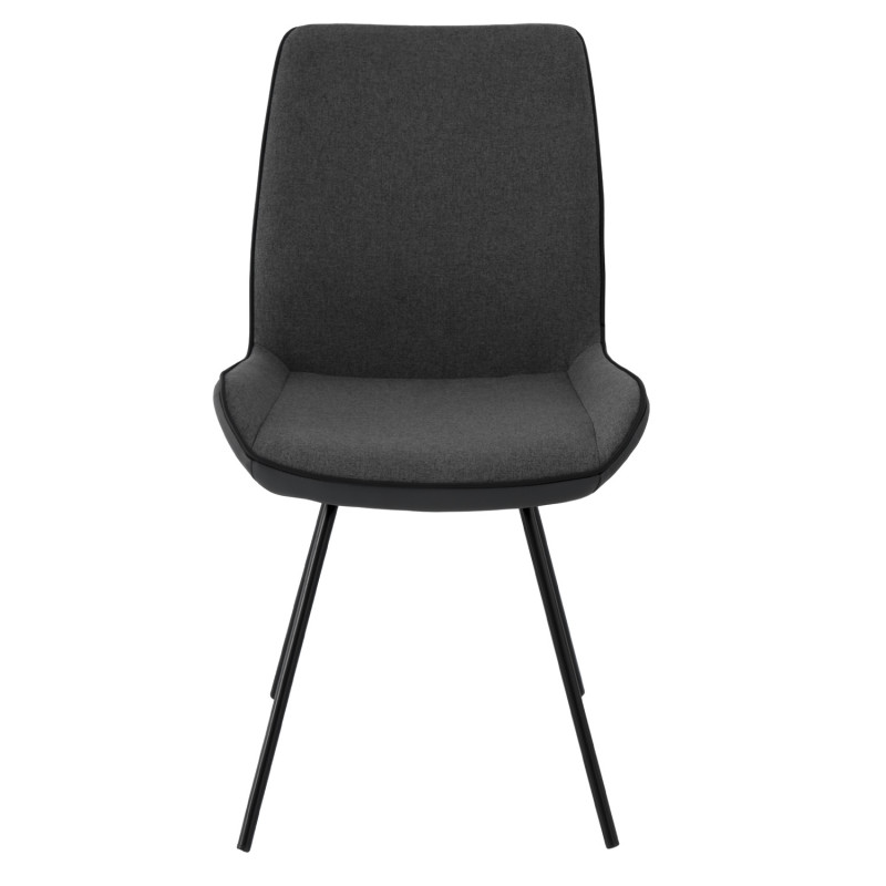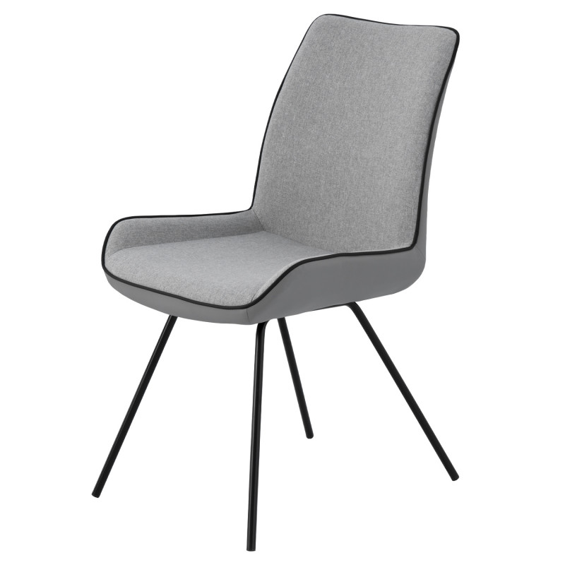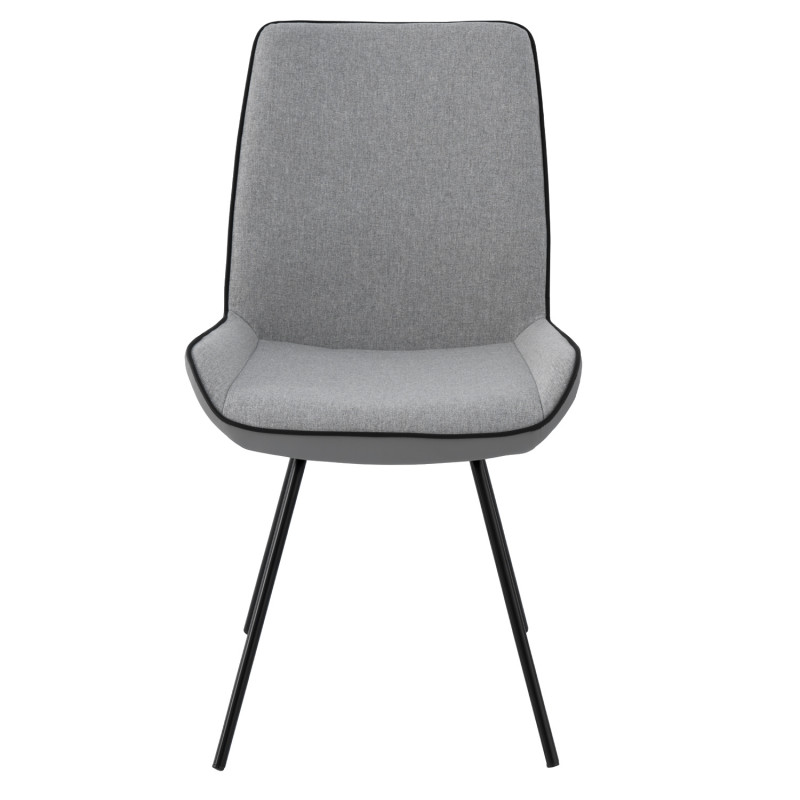 Cadeira robusta com estrutura e pernas em aço, estofada com diversas cores disponíveis, com tecido e a elegância do couro sintético no encosto.