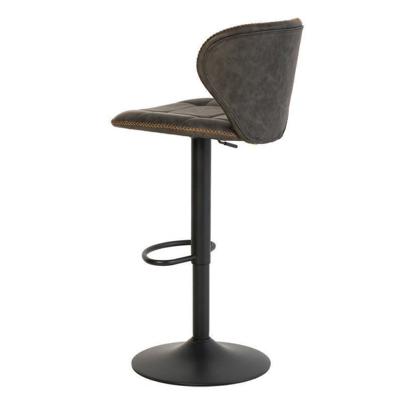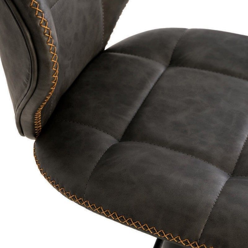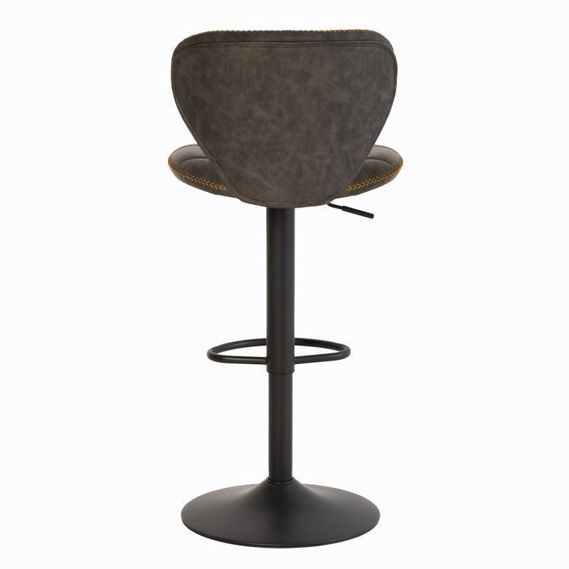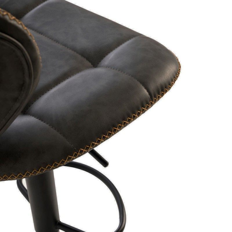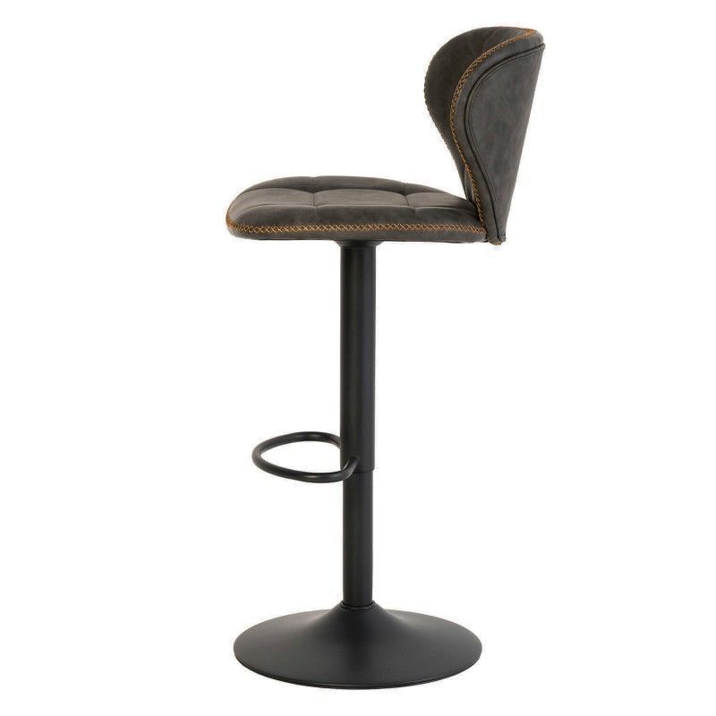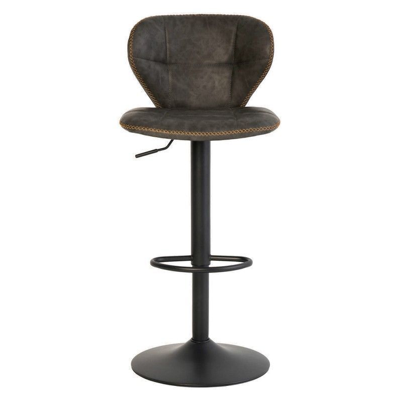 Banco estilo industrial com assento em couro sintético e estrutura metálica.