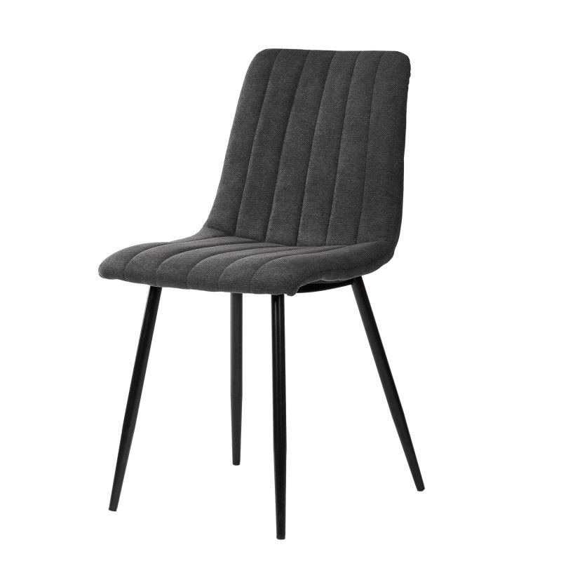 Cadeira de metal com pernas cónicas com acabamento em preto. Resistente e robusto devido à composição dos seus materiais.