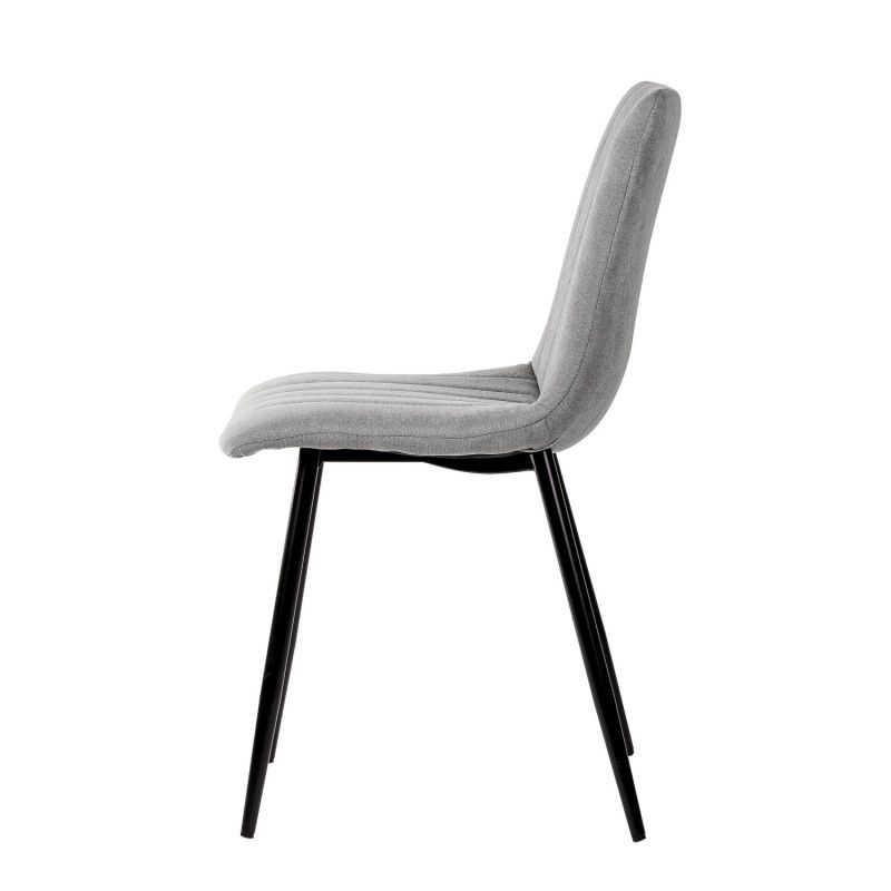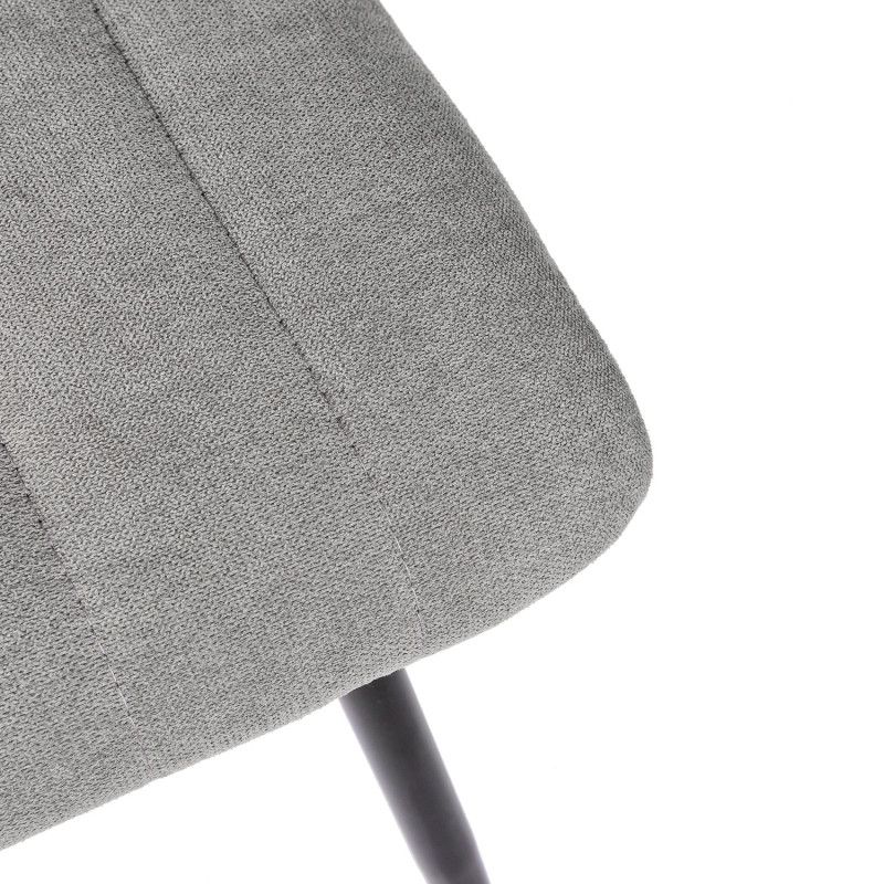 É uma cadeira confortável e seu estofamento em tecido dá um toque de fresco.