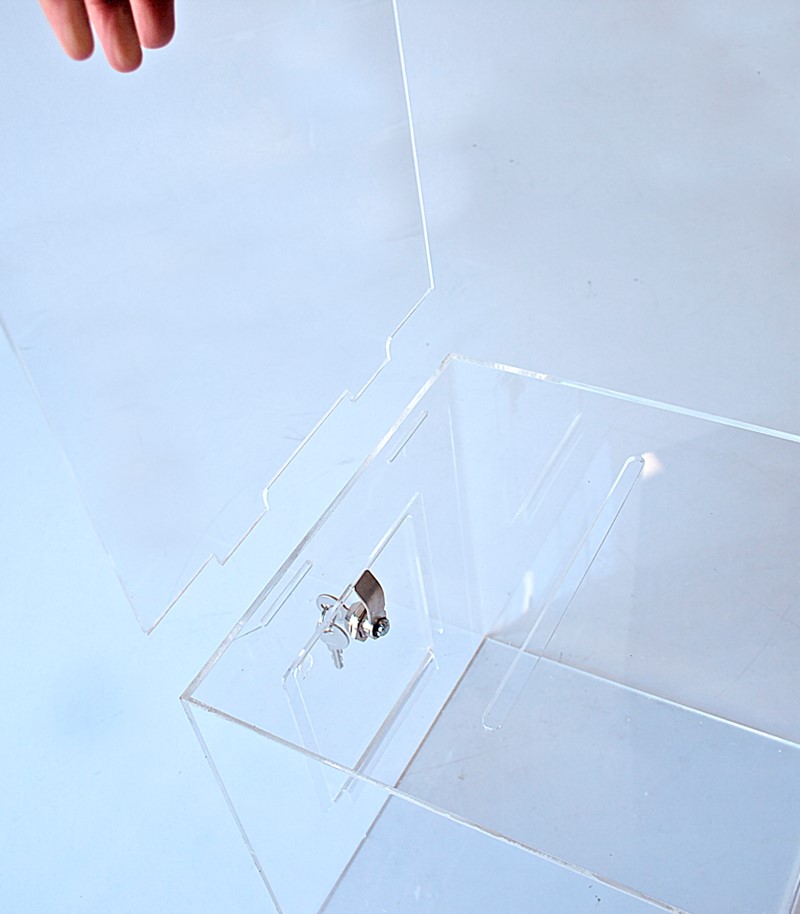 Possui uma ranhura horizontal no topo da caixa, para que nela possam ser introduzidos conteúdos, desde votações a sugestões.