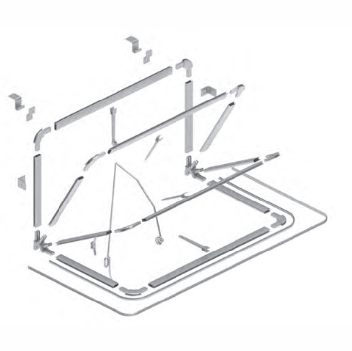 Pode ser instalado tanto dentro do batente da janela como no exterior, permitindo a instalação frontal, no teto e entre as paredes. A recolha deste sistema é feita por uma polia e corda que permite dobrar o toldo em forma de capota.