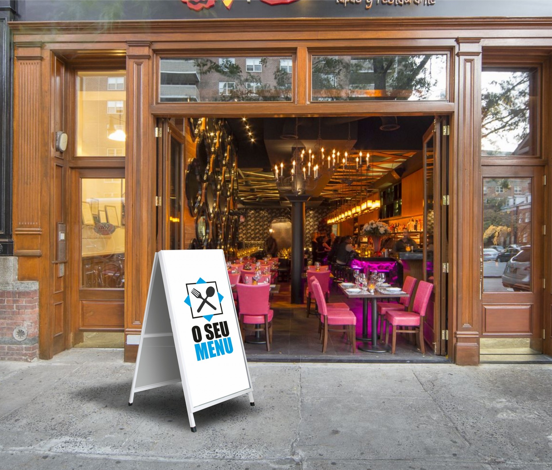 Este cavalete é perfeito para áreas de grande afluência como restaurantes, shopping, lojas, representando uma solução prática e económica para a divulgação da marca, produtos e serviços.