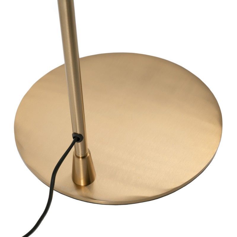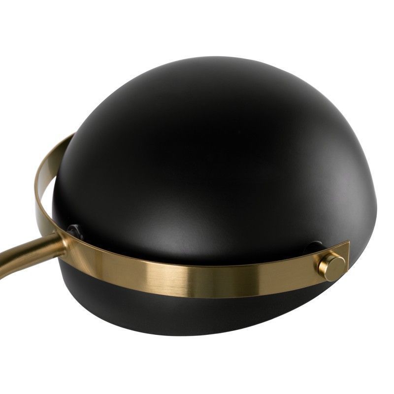 Candeeiro de pé com estrutura metálica em preto e dourado.