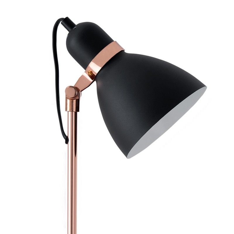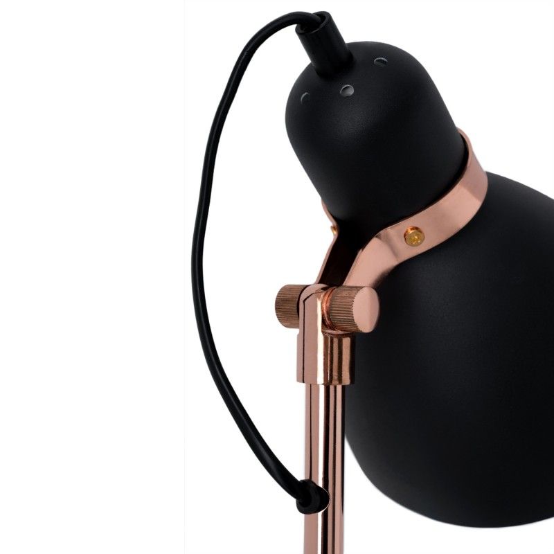 Candeeiro de mesa em metal preto e cobre com 23 cm de profundidade e 56 cm de altura.