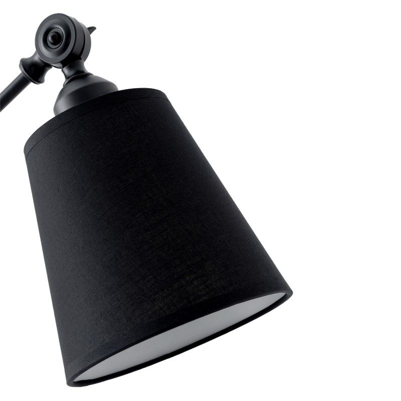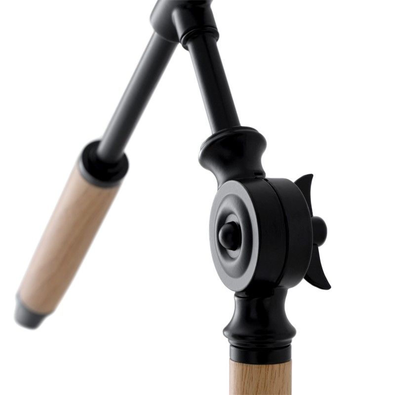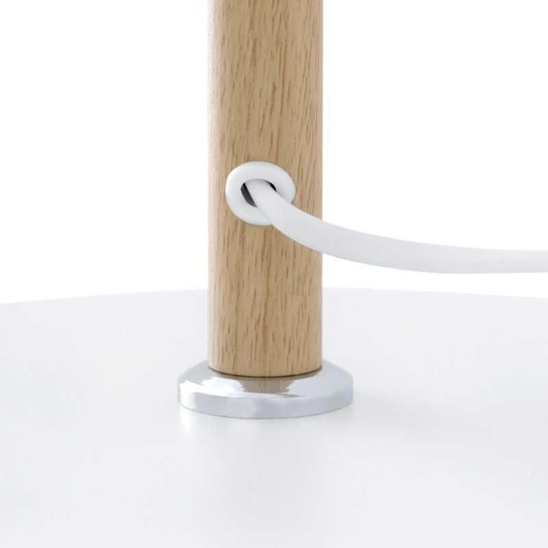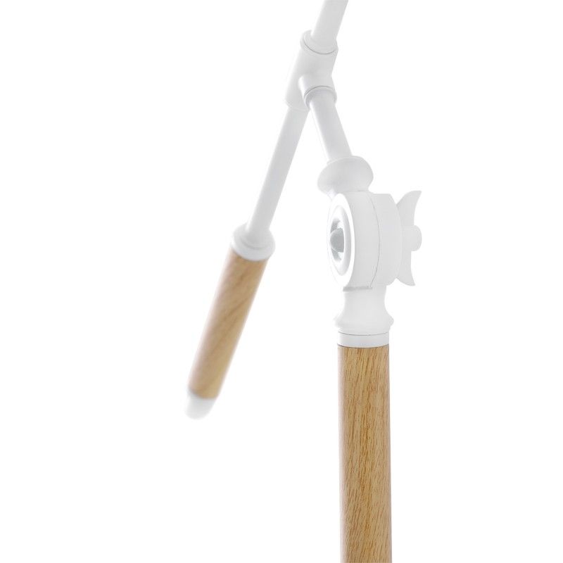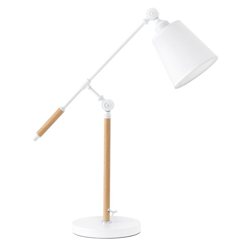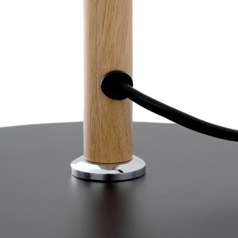 Candeeiro de mesa em metal, madeira e abajur de tecido