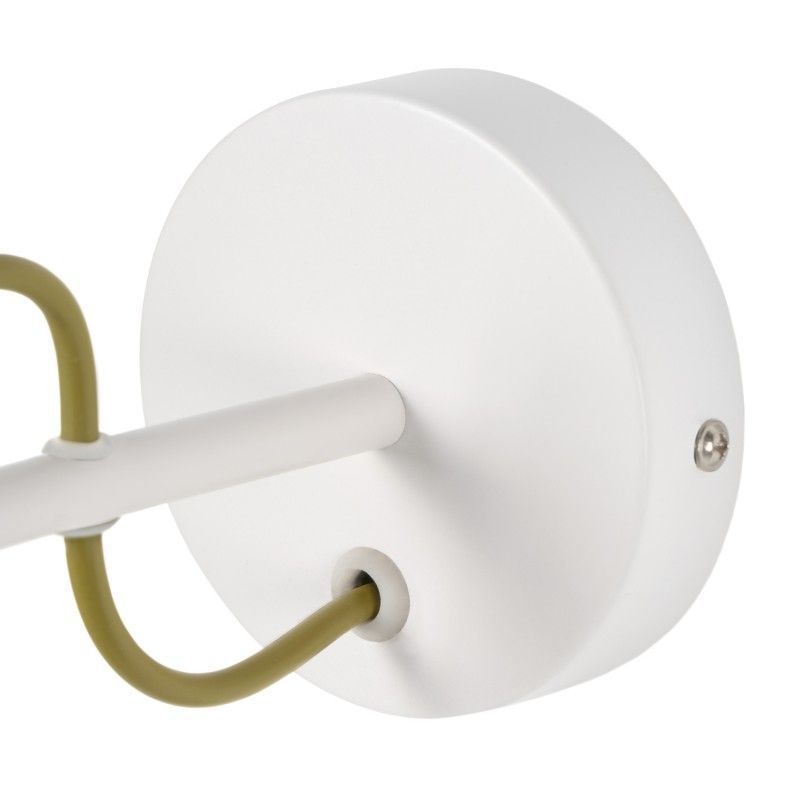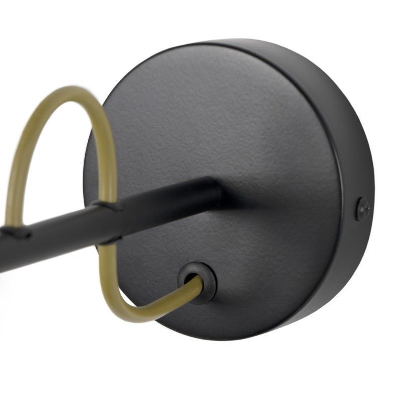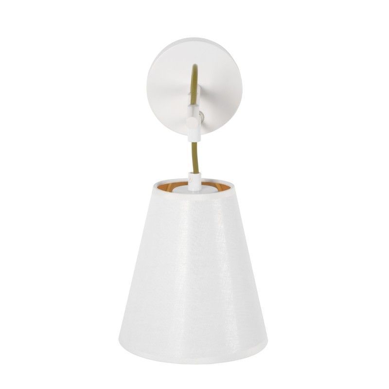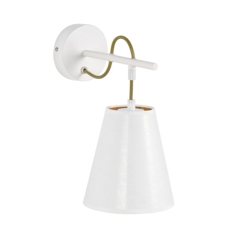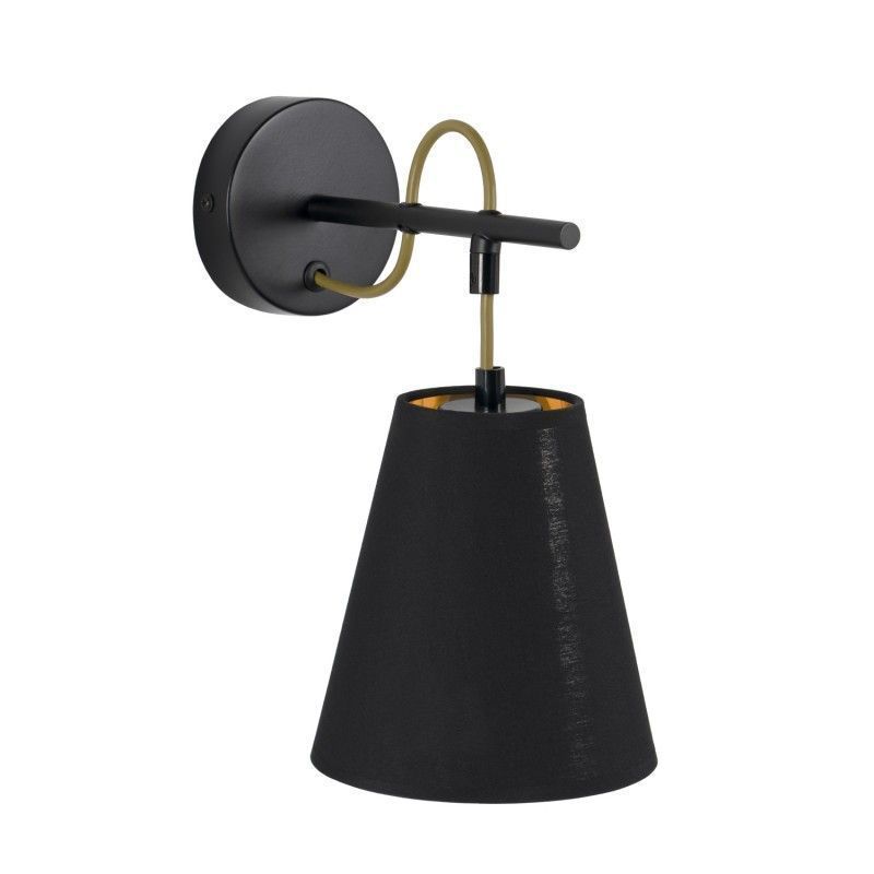 Candeeiro de parede com estrutura em metal e abajur em tecido.