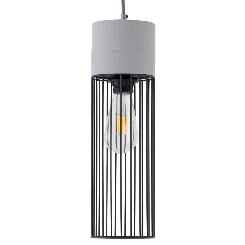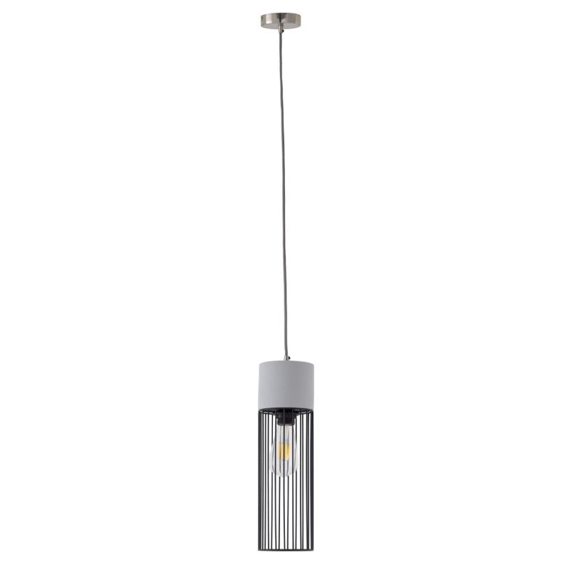Candeeiro de estilo industrial com abajur de cimento e metal com cabo de tecto forrado a tecido de 106 cm e placa de fixação redonda de Ø 10 cm