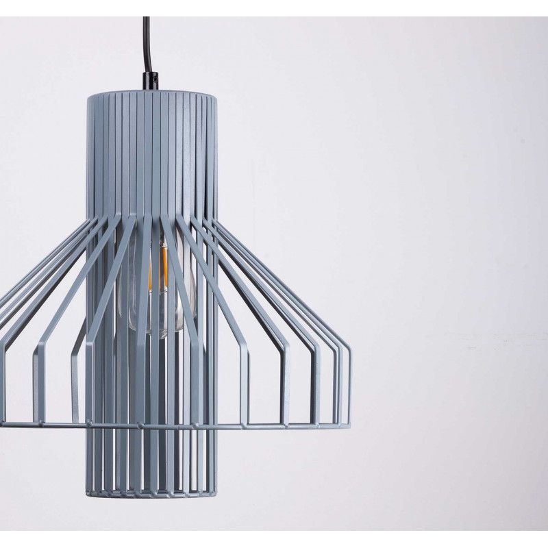 Luminária de teto em metal com corpo duplo. Feito com metal plano e cor cinza fosco. Última tendência em lâmpadas abertas.
