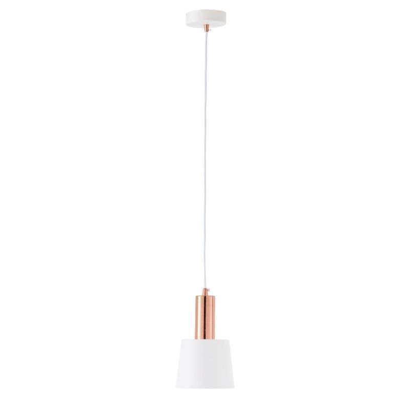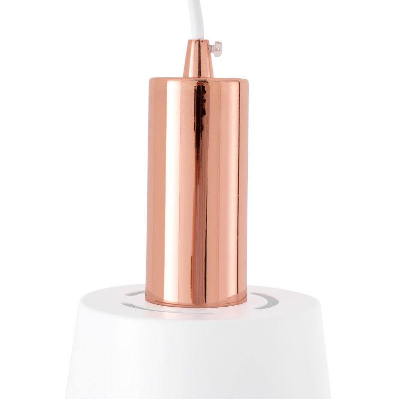 Candeeiro de metal branco e cobre com cabo de teto de 107 cm e placa de fixação redonda de Ø 10 cm
