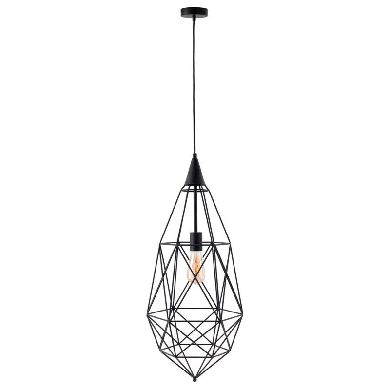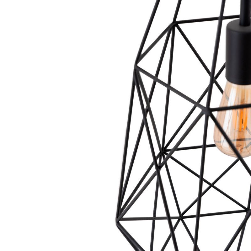 Candeeiro de teto moderno com formas geométricas em metal preto. Candeeiro de grande volume que irá encher qualquer divisão proporcionando classe.