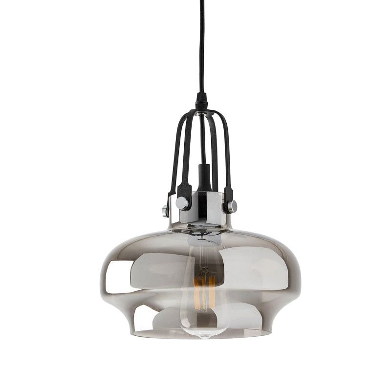 Candeeiro de teto de design moderno e linhas curvas em vidro efeito brilhante. Acabamento original superior em metal, para dar um toque moderno e elegante à sala de estar.