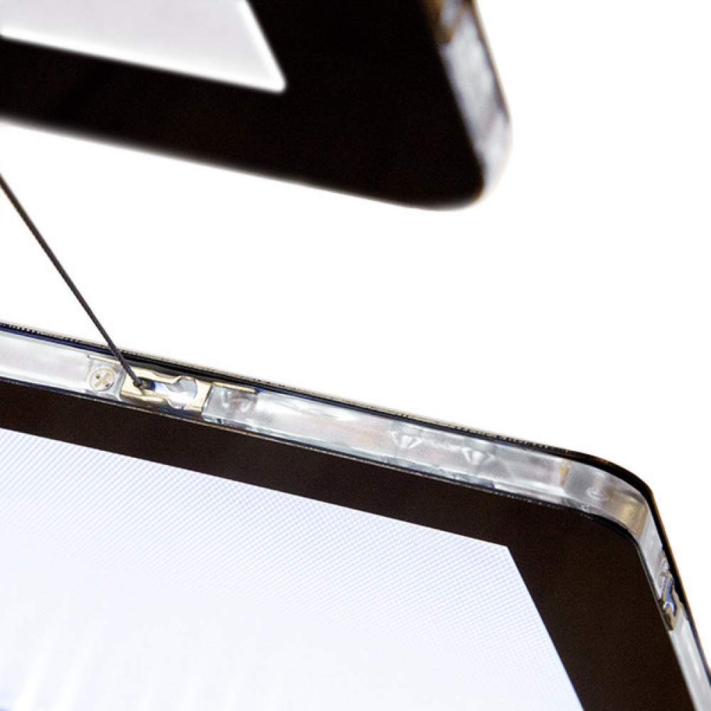 • O cabo de ligação passa pelo interior do Display através das 2 entradas que o produto tem em cada um dos lados, permitindo utilizar o mesmo produto em diferentes orientações: horizontal e vertical.