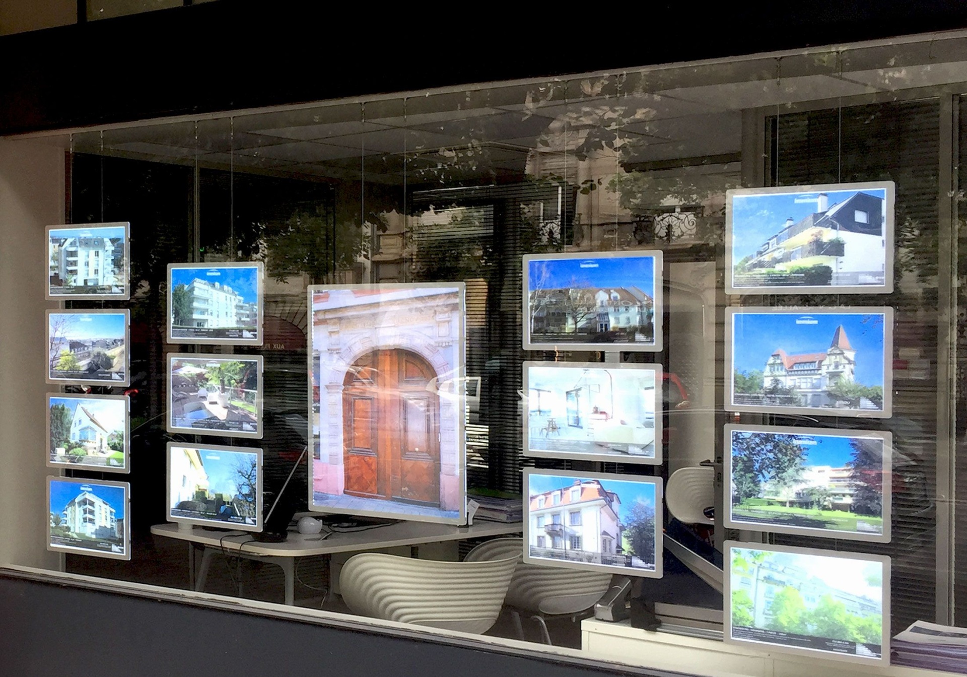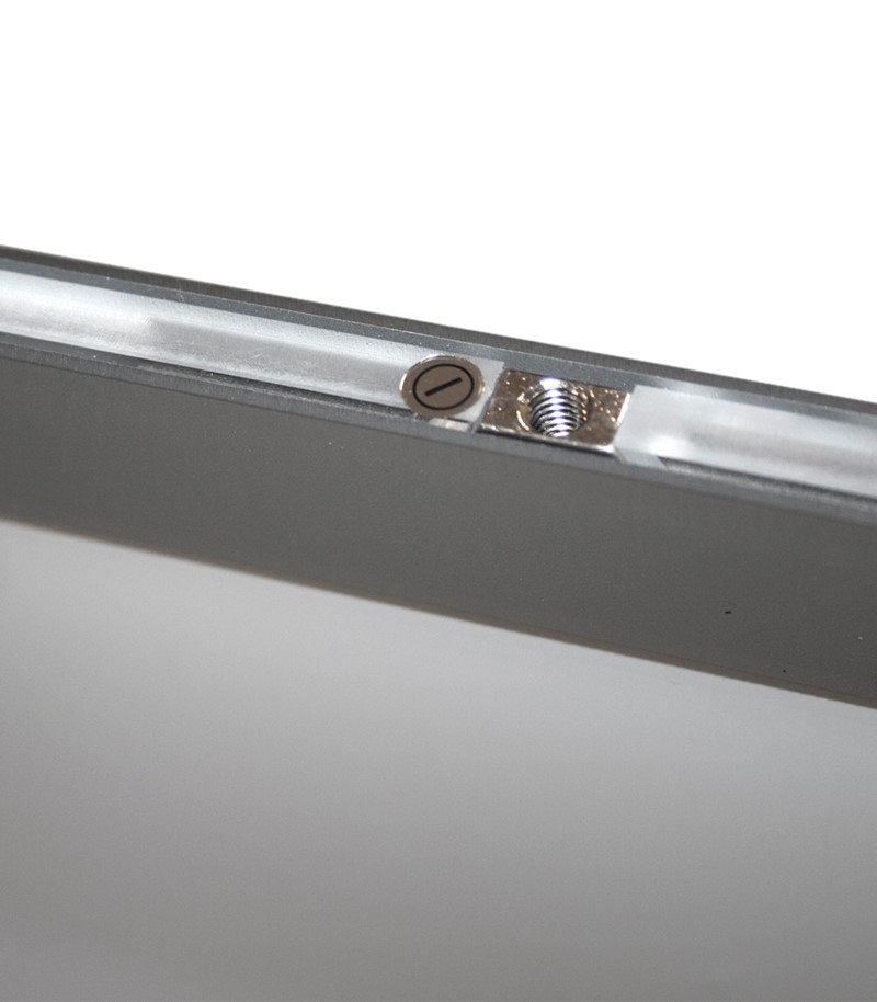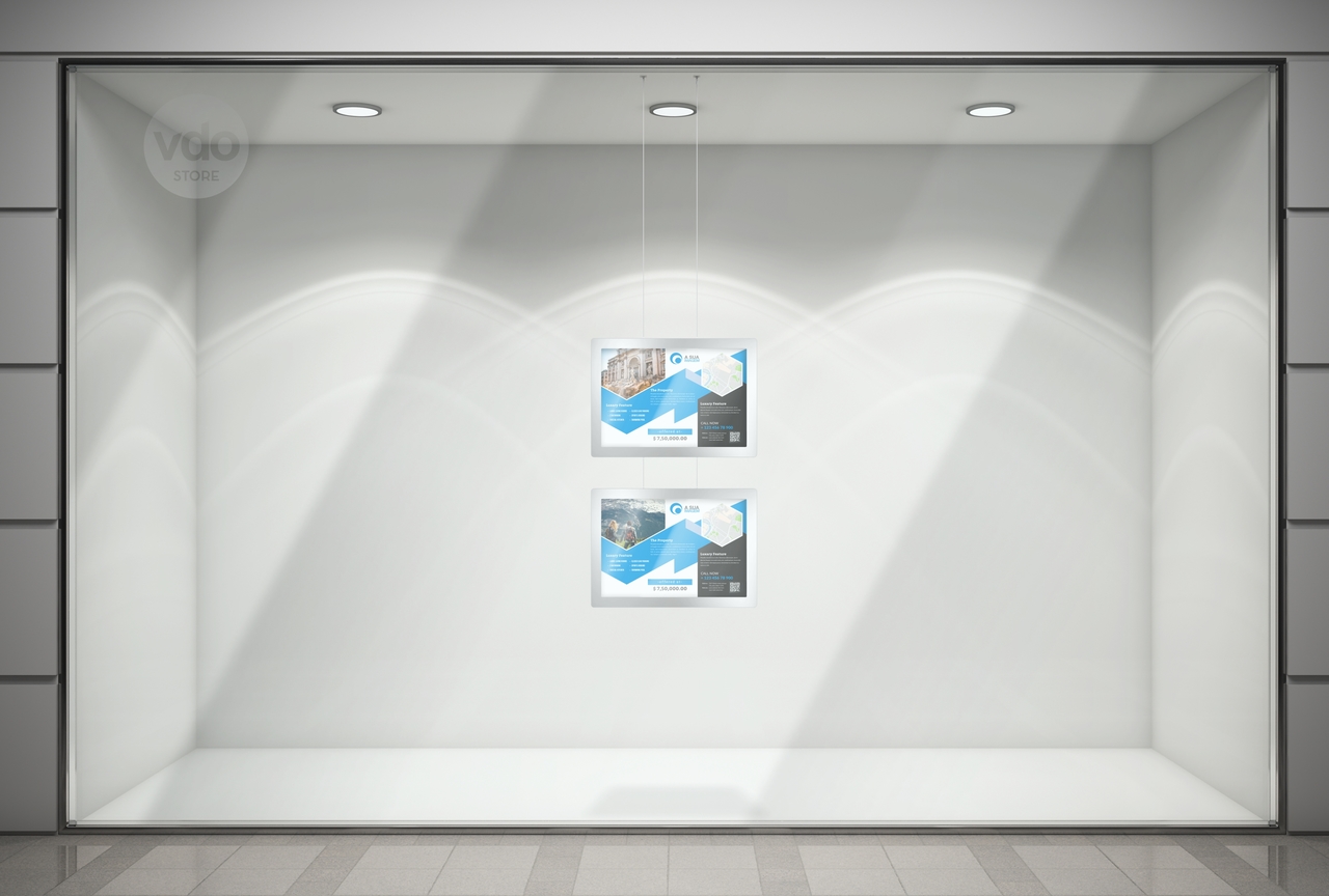 Suporte de posters com um design elegante e minimalista. Este expositor LED tornou-se essencial para montras iluminadas.