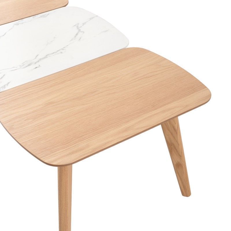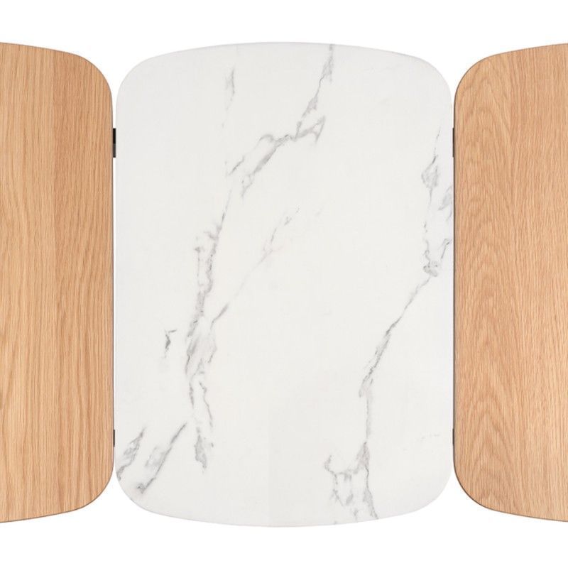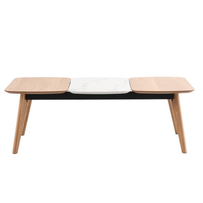 Mesa de centro pequena retangular em carvalho e tampo efeito mármore