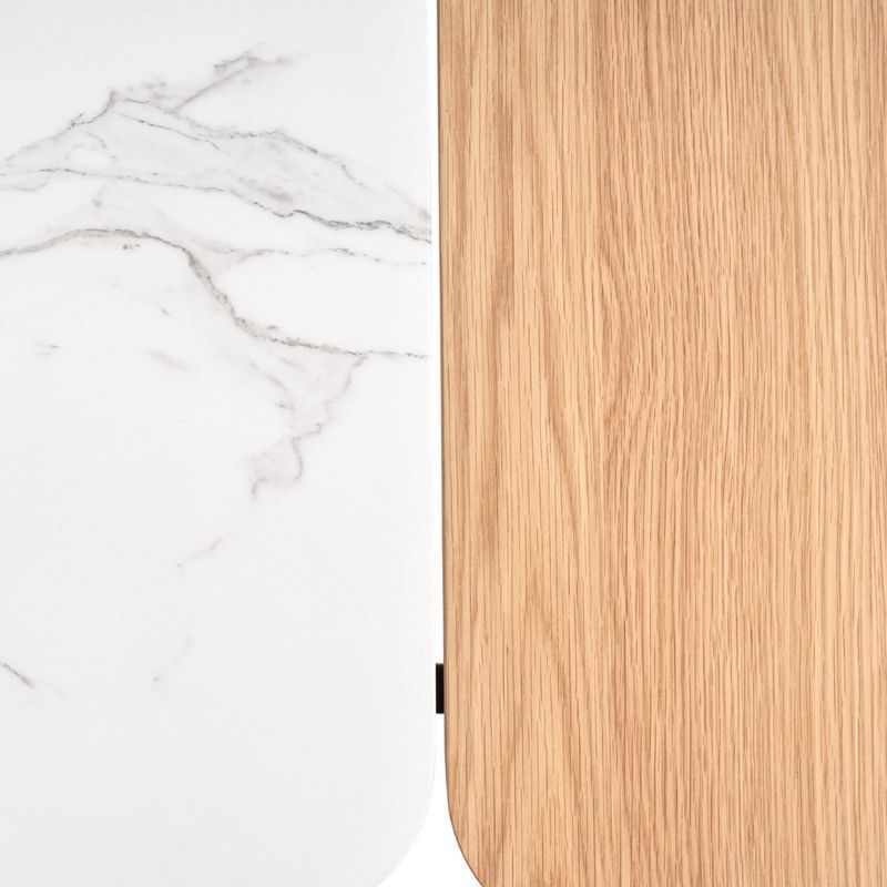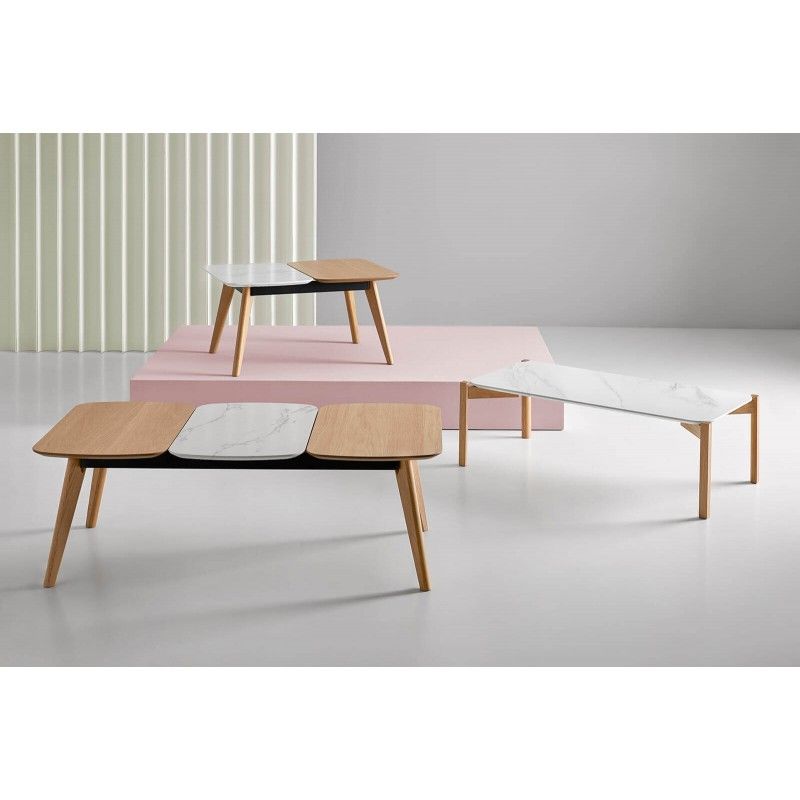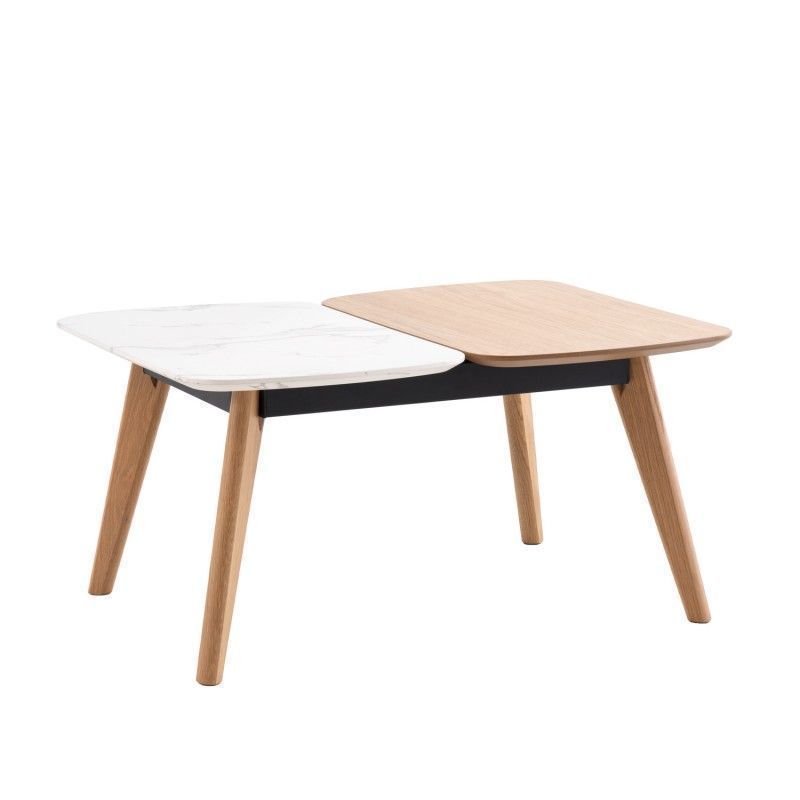 Mesa de centro pequena retangular em carvalho e tampo efeito mármore
