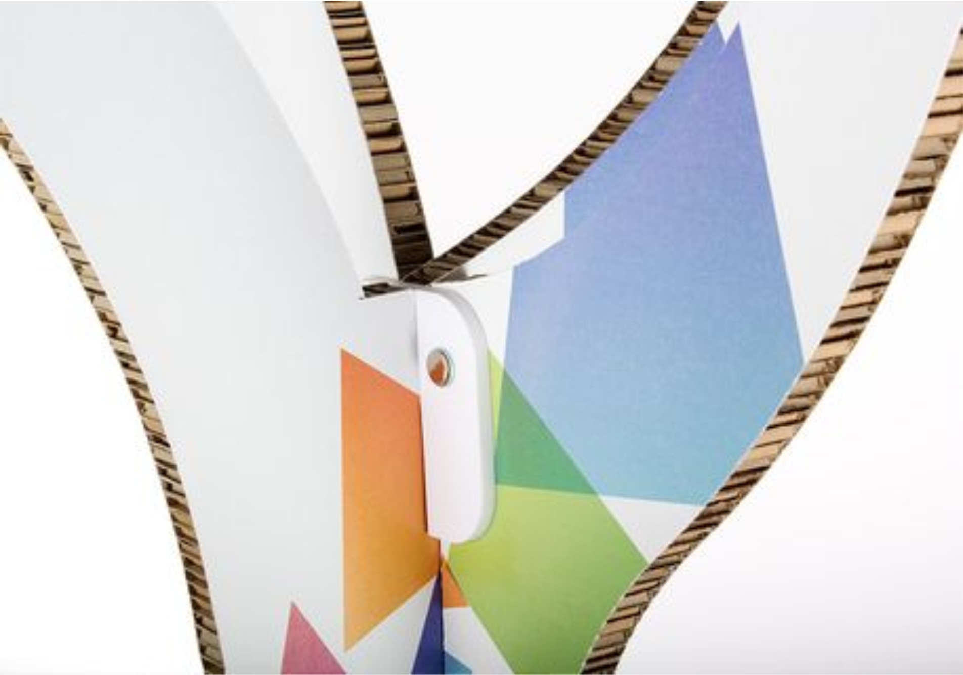 Fabricamos em papel reciclado com interior em favo de mel, extremamente leve e resistente.