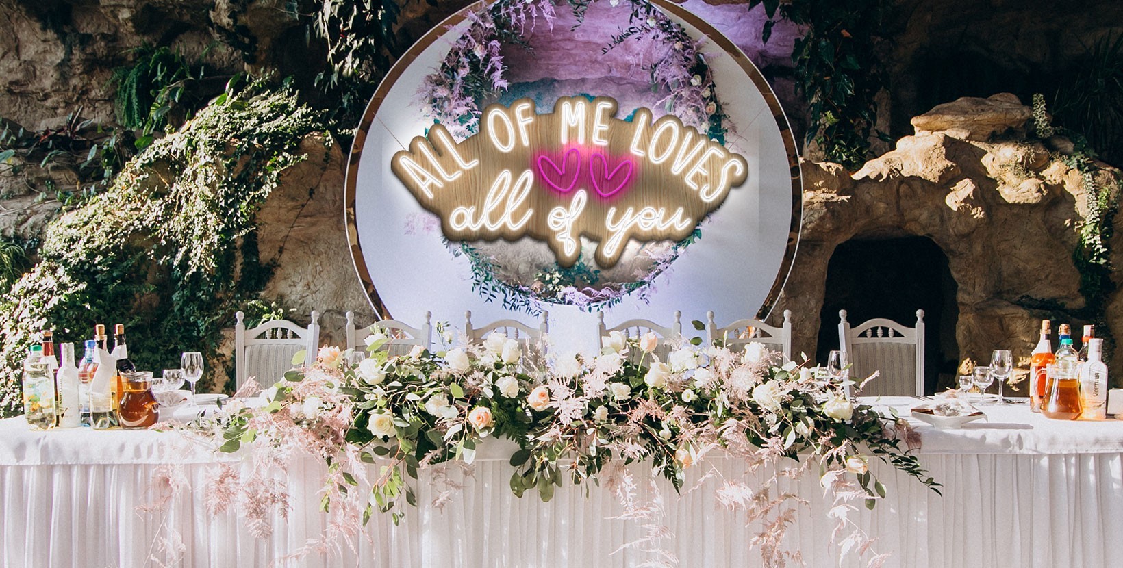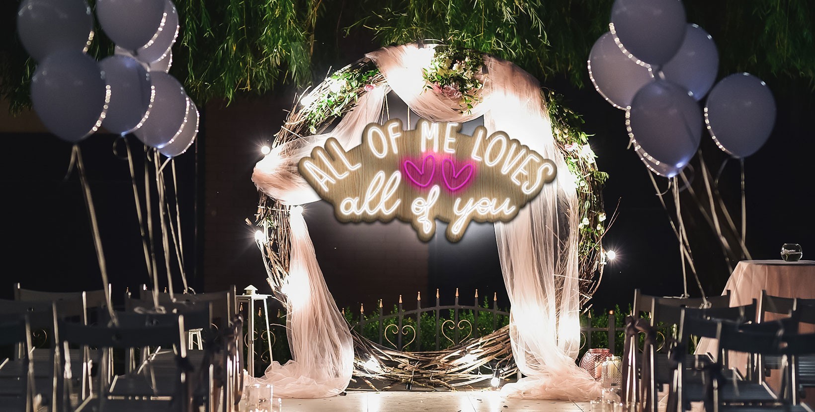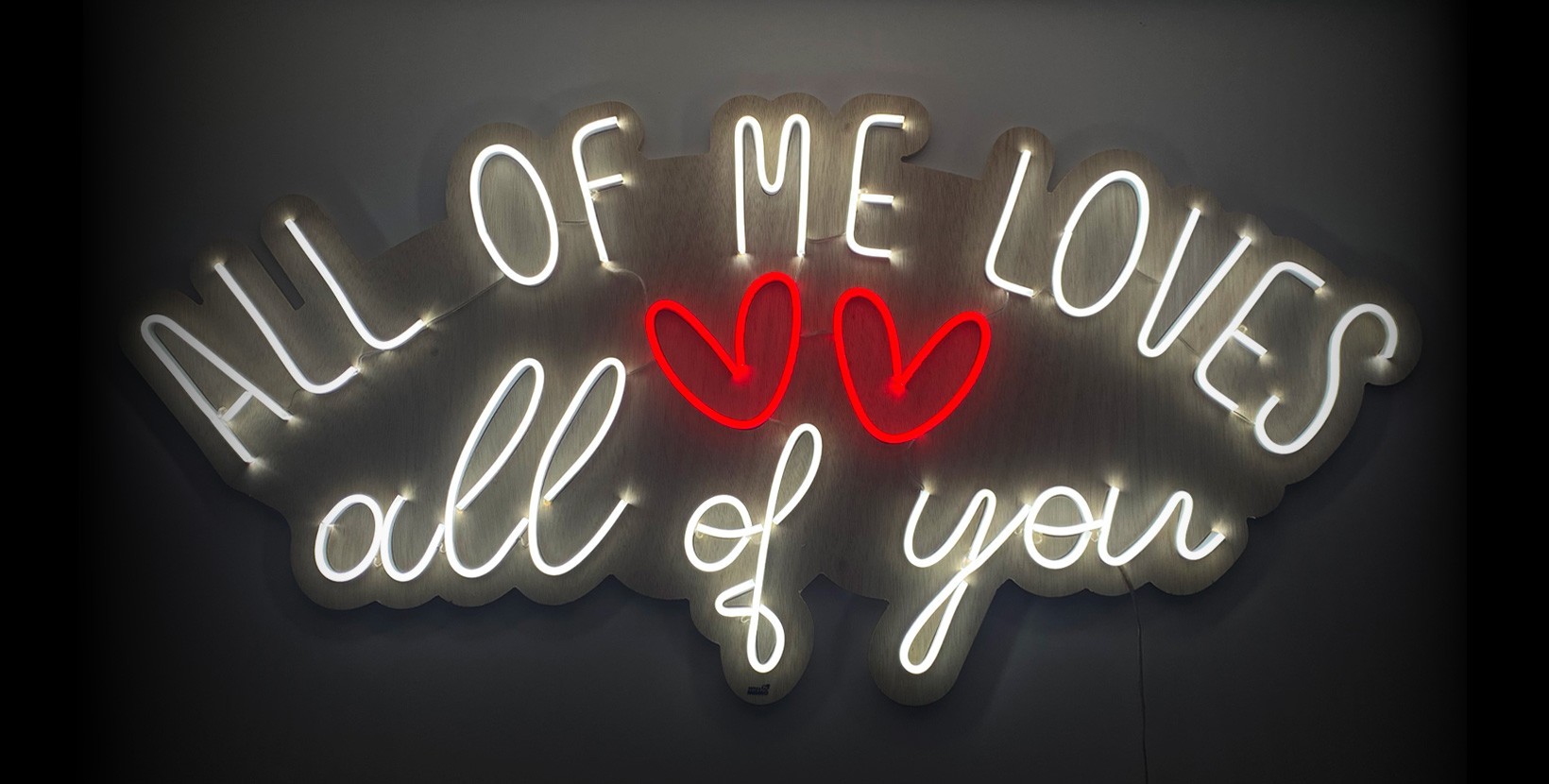 Realce o lado mais terno, original e luminoso do seu casamento ou da sua casa com a frase "All of me loves all of you".