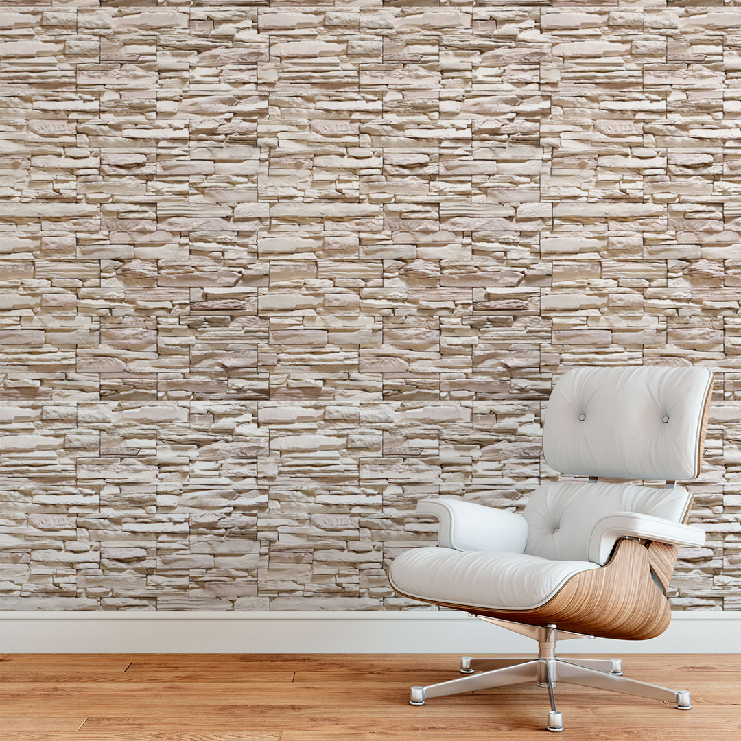 Este papel de parede com efeito de pedras traz uma sensação de autenticidade e rusticidade, adicionando um toque de natureza à sua decoração interior.