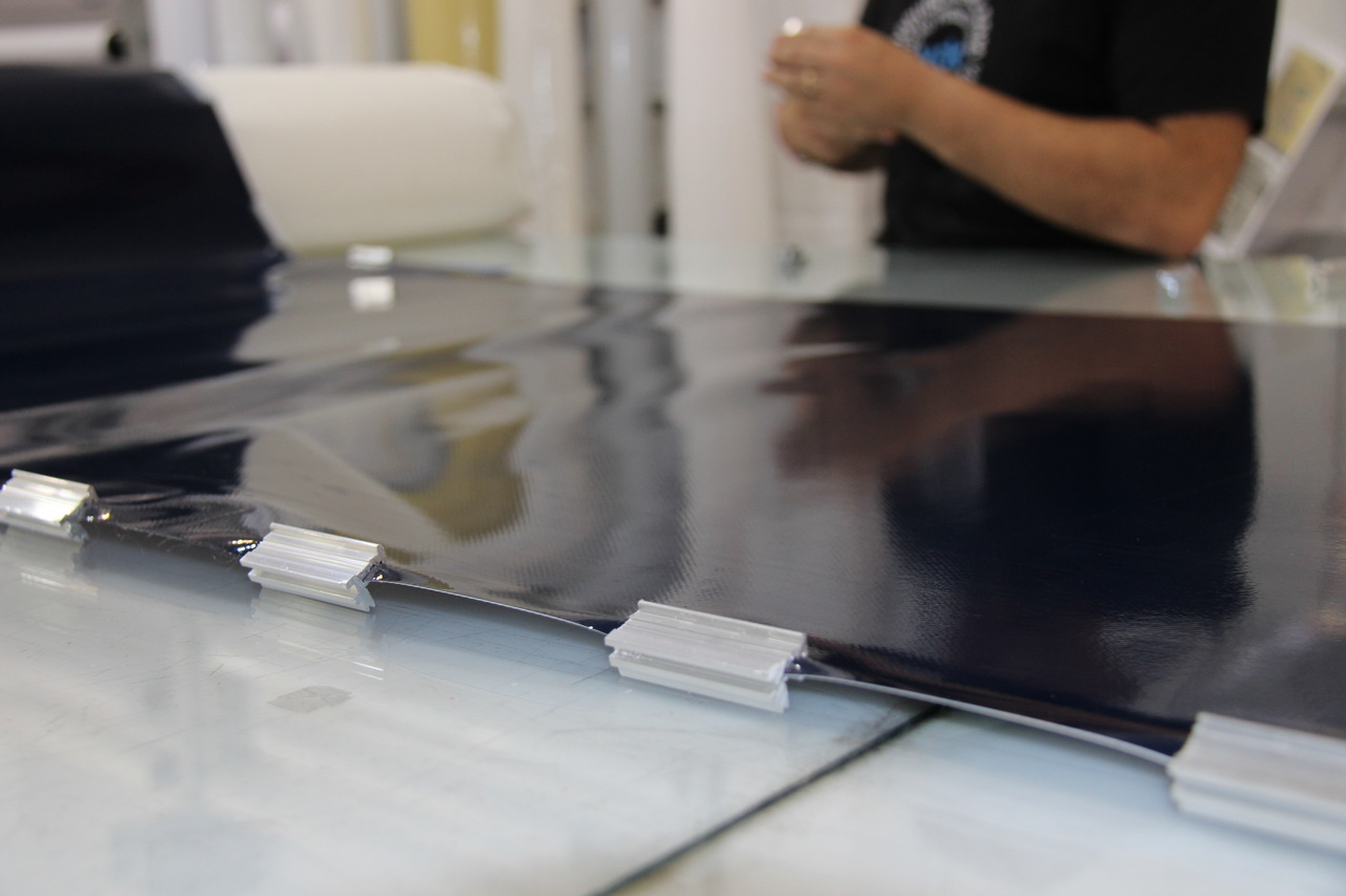 • Frente em tela retroiluminada com impressão ou vinil de corte translúcido.