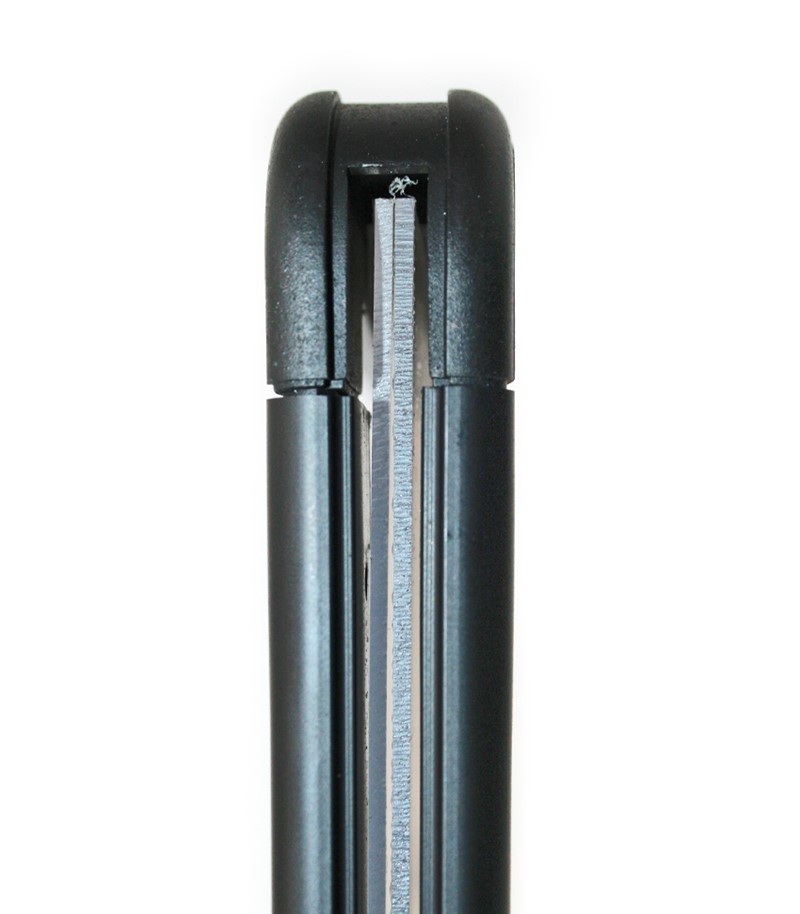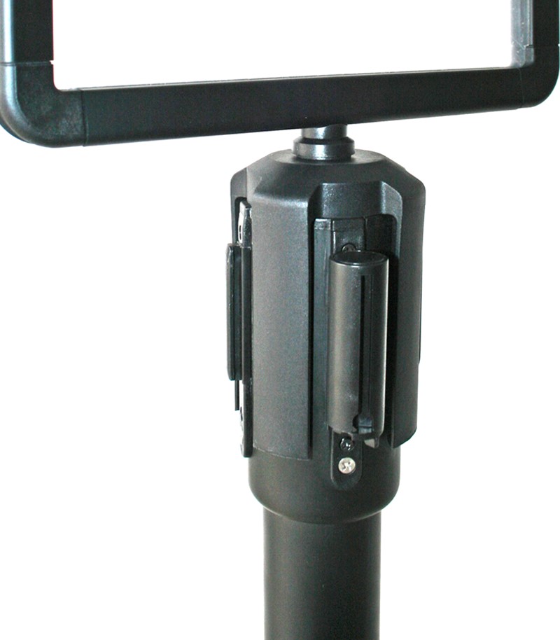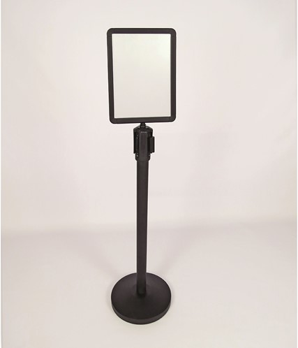 Porta Cartaz A4 com orientação vertical e acabamento lacado preto.