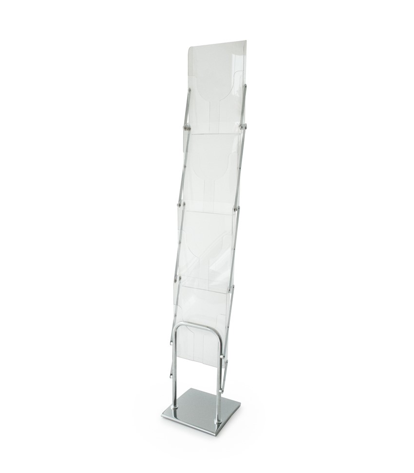 Esta estrutura é composta por quatro níveis, onde cada nível apresenta uma estrutura com 24x36 cm, o que significa que poderá colocar até quatro comunicações diferentes como é o caso de tabelas de preços, catálogos, jornais, revistas, brochuras e flyers.