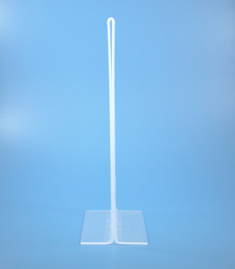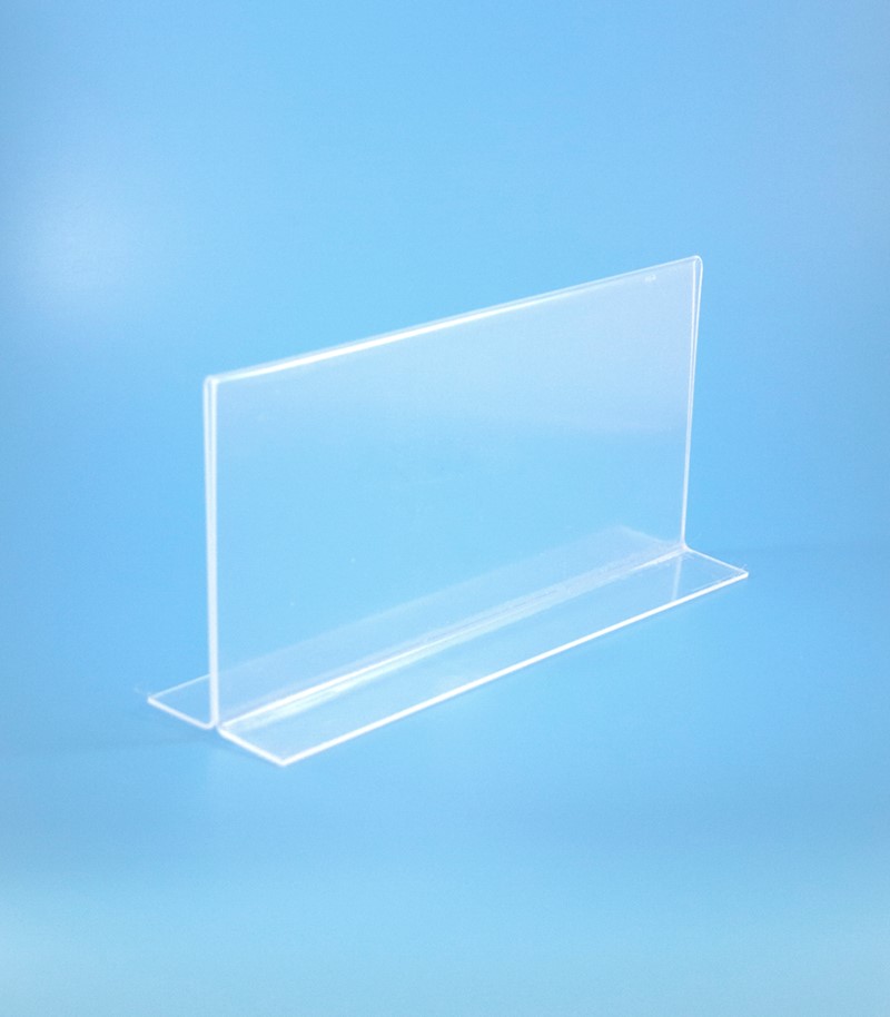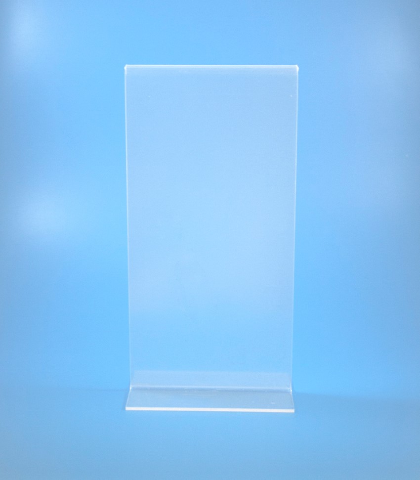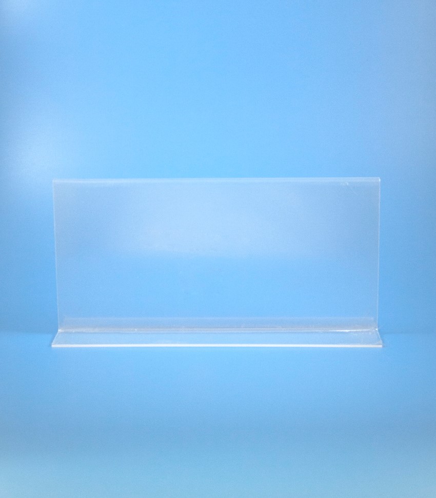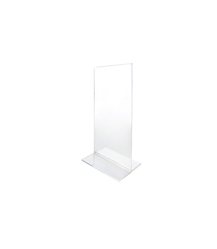 O Porta-Menu de acrílico apresenta uma forma de “T” invertido.