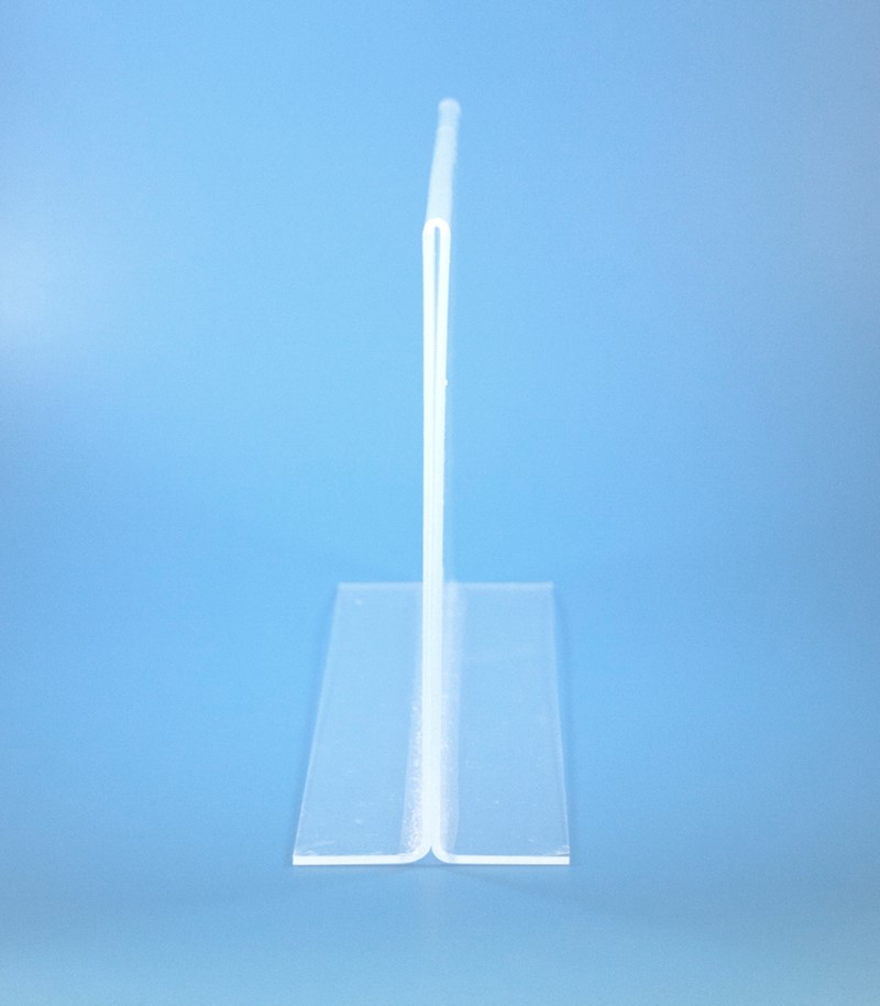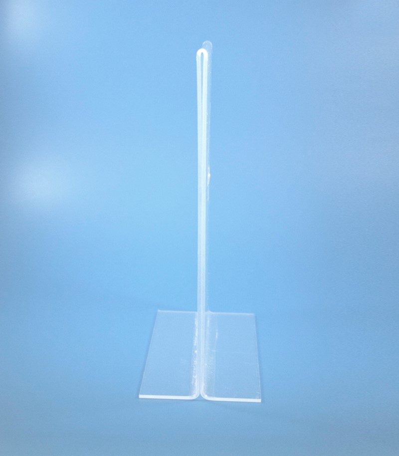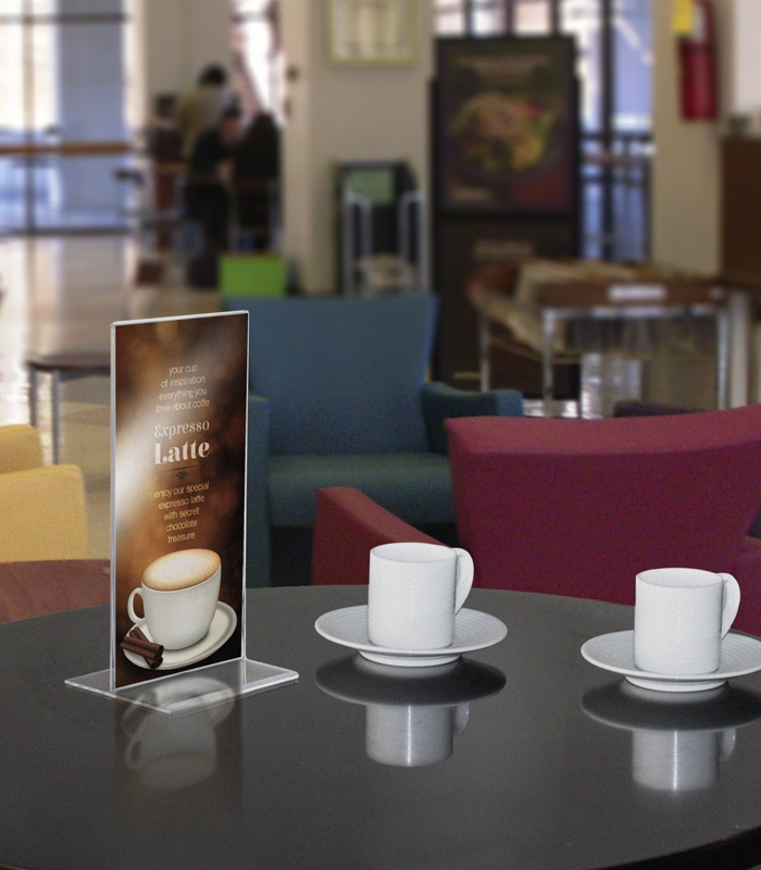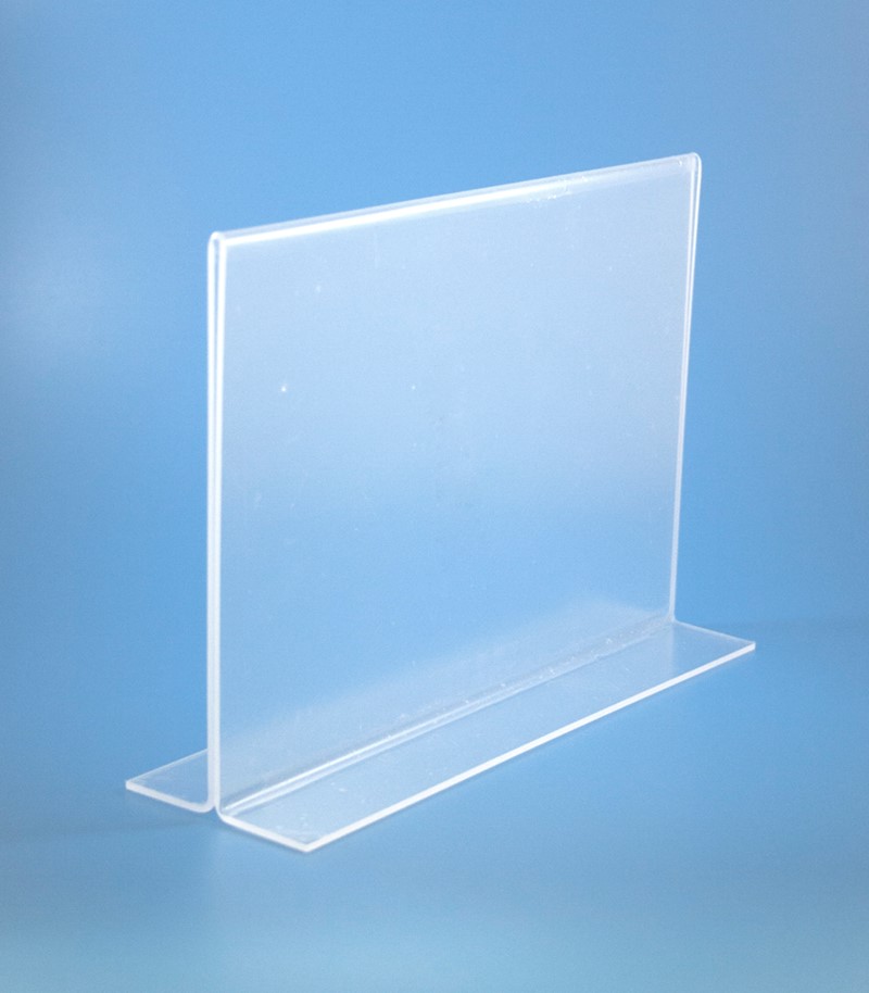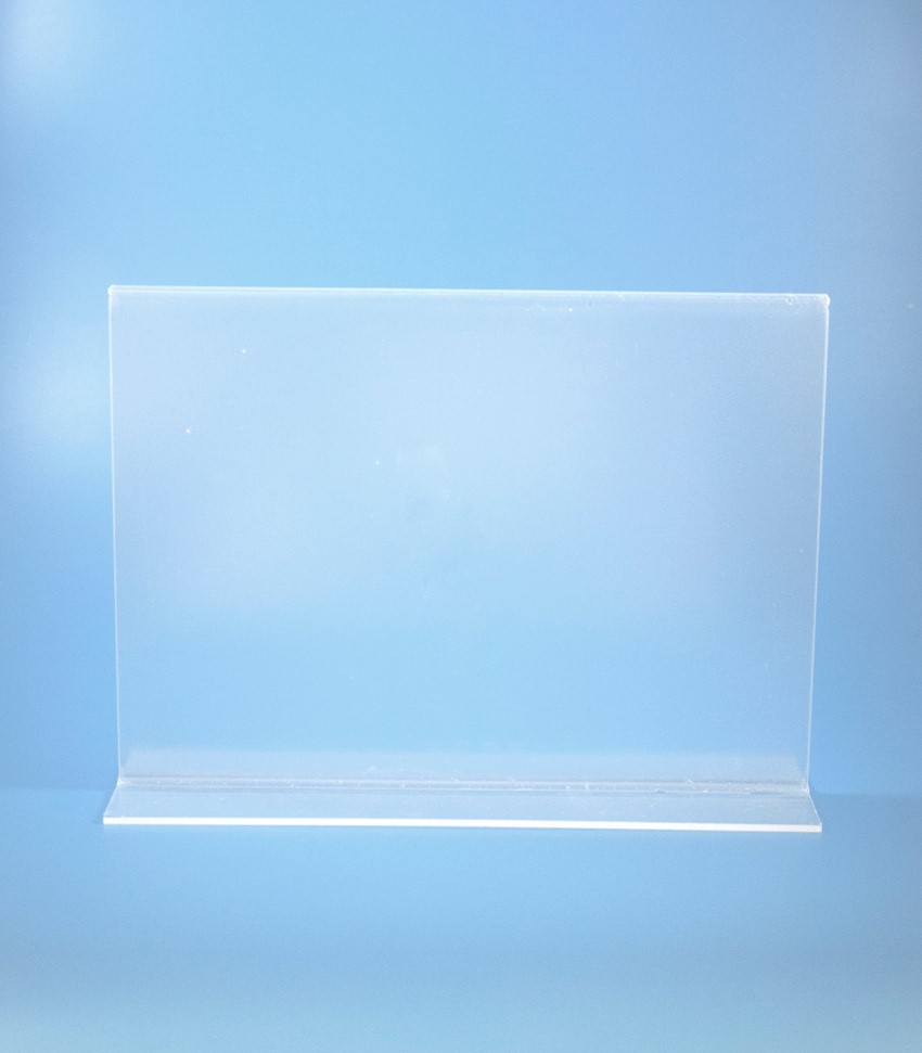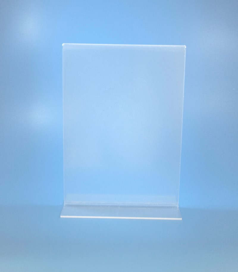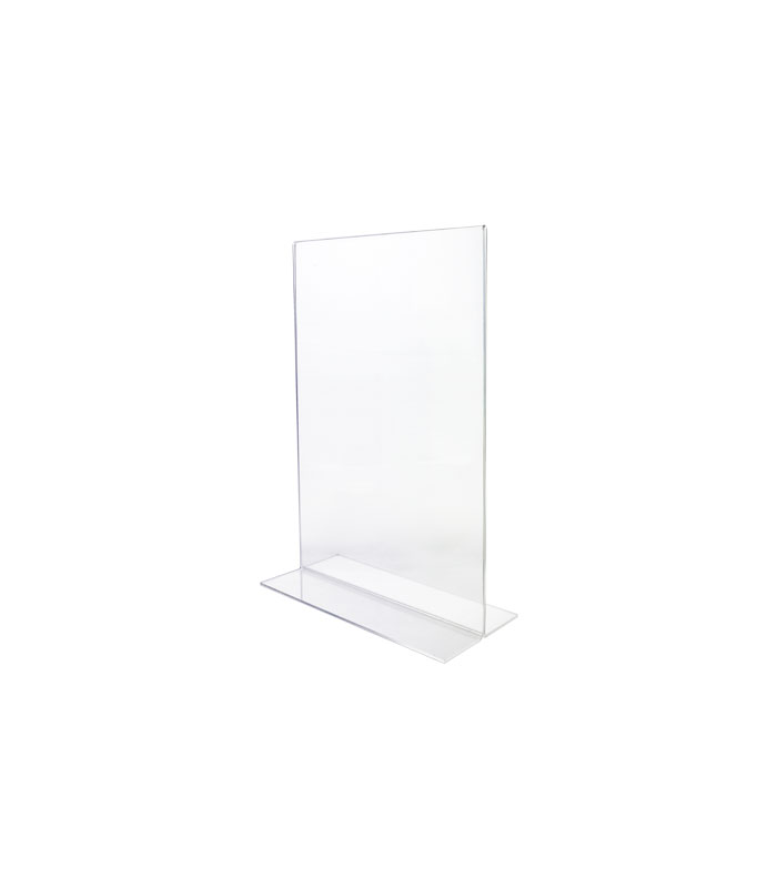 O Porta-Menu de acrílico apresenta uma forma de “T” invertido.