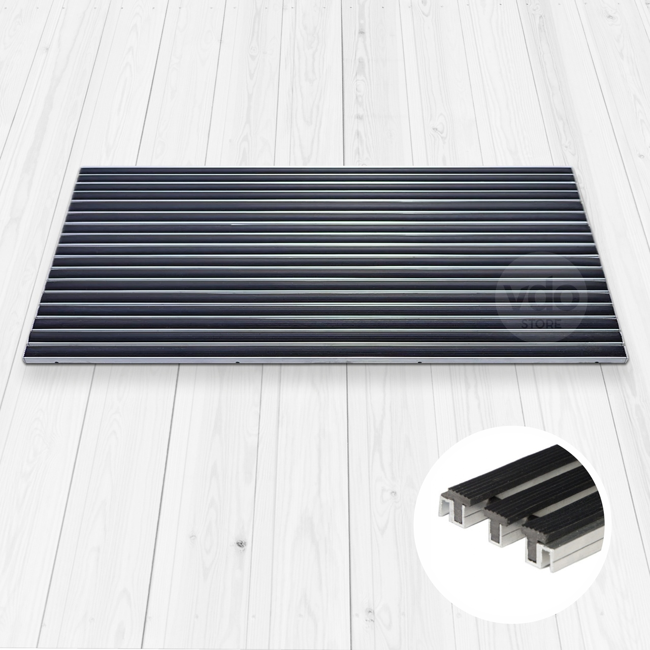 Os tapetes de Alumínio são indicados para ambientes de extrema utilização, com elevada capacidade de retenção de sujidade, compostos por alumínio extrudido e tiras de PVC estriadas.