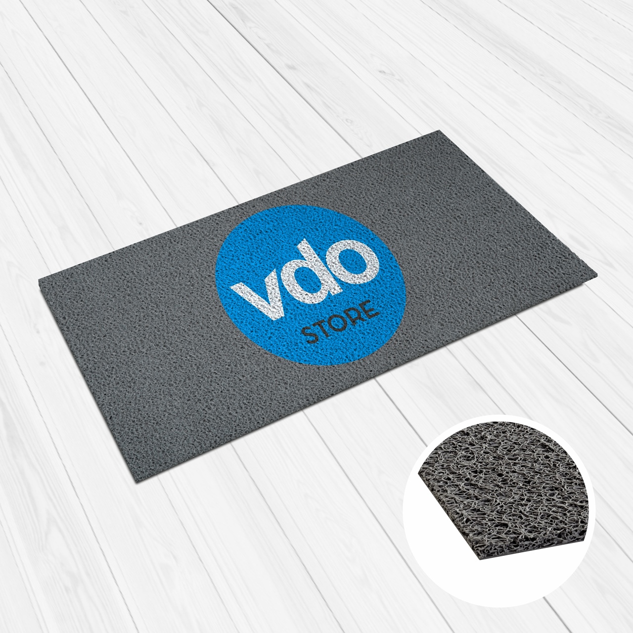 • No caso de personalização do Vinil, é executada uma fusão de cores diferentes do mesmo material e não uma impressão ou pintura, logo a personalização terá a mesma durabilidade que o tapete. Tendo em conta esta forma de personalização, as cores para as mesmas estão dependentes das cores existentes neste material.