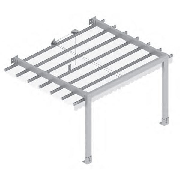 A estrutura é construída em alumínio lacado e suporta as guias de deslocamento por onde deslizam travessas ou barras de suporte de duplo macarrão que sustentam as varas da lona e permitem a abertura e fecho do toldo através de cordas e polias, ou com um sistema de correias de transmissão integrada nas guias acionadas por motor.